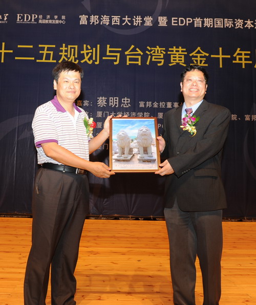 结业典礼之前,经济学院和王亚南经济研究院特地邀请台湾富邦金控董事长蔡明忠为“101班”同学以及其他师生作了题为“大陆十二五规划与台湾黄金十年展望与合作”的专题讲座。这一讲座也是厦门大学和富邦金控共同设立“厦门大学富邦海西大讲堂”开堂之讲。