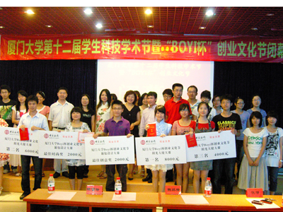7月5日上午,厦门大学第十二届学生科技学术节暨“BOYI杯”创业文化节闭幕式在学生活动中心多功能厅举行。活动全程赞助单位、我校共青团中央“青年就业创业见习基地”——福建泉州沥阳手袋有限公司中国销售总监陈雪辉、《台海》杂志主编年月、诗人子梵梅和校团委副书记陈雪玲等领导、嘉宾出席了闭幕式。