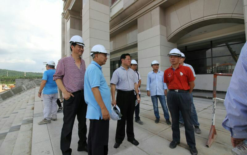 朱崇实一下飞机就从机场直接到校区工地进行视察。他详细地了解工程进展情况,就存在的问题逐一与工程负责人进行交流,探讨解决的办法。在20日和21日分别与施工总包单位中国水电七局的领导及技术人员、马来西亚顾问团团队进行了工作专题会议,分别就施工中存在的问题及解决办法、设计及监理方面的问题跟中水七局的领导和技术人员、顾问团队进行了认真而坦诚的沟通与讨论。他指出,现在距离校区一期工程必须在明年三月全部竣工完成的时间只剩不到两个月,时间紧、任务重,一定要团结一致,齐心协力,卯足最大干劲,确保收尾工程“保质量、保进度、保安全”圆满完成。厦大作为业主单位,分校王瑞芳校长、张建霖校长助理、罗林教授等在现场工作的同志,分别就工程的质量、进度等方面提出具体而明确的要求。中水七局及顾问团队的技术人员一一作出了答复和回应。他们都表示要在前一段工作的基础上, 不断总结经验,确保在剩下的两个月内保质保量保进度保安全,把扫尾工程圆满的完成好,保证各教学设施能按期投入使用。