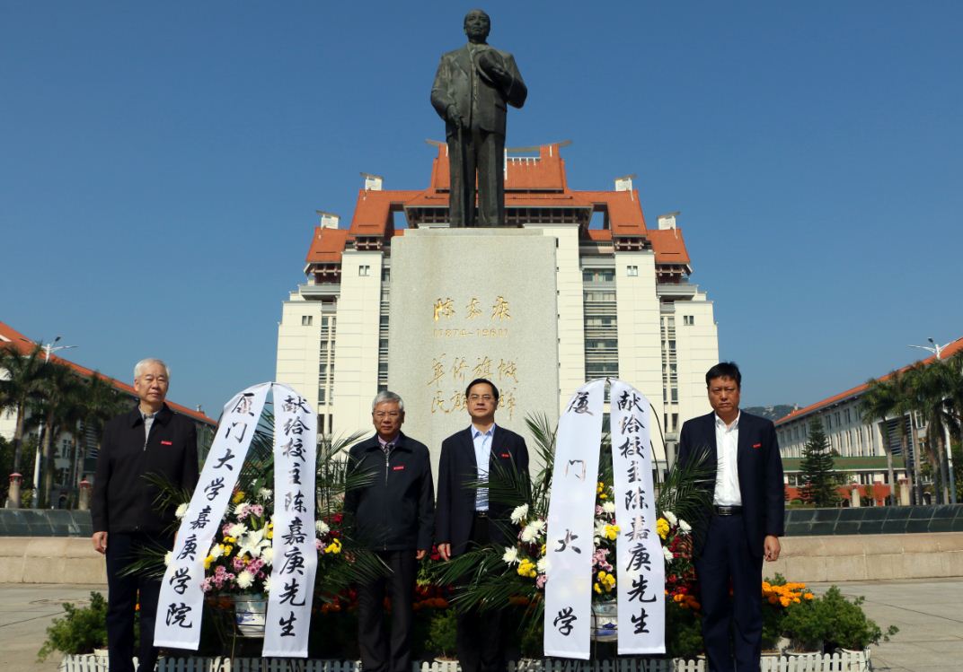 上午九时,校领导、校友总会领导、校长助理、校友代表、师生代表来到思明校区群贤楼前,祭扫陈嘉庚先生铜像,表达了对校主的崇高敬意和深切哀思,深切缅怀他爱国爱校之深情和创办厦大之艰辛。