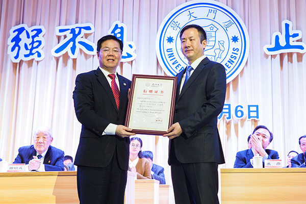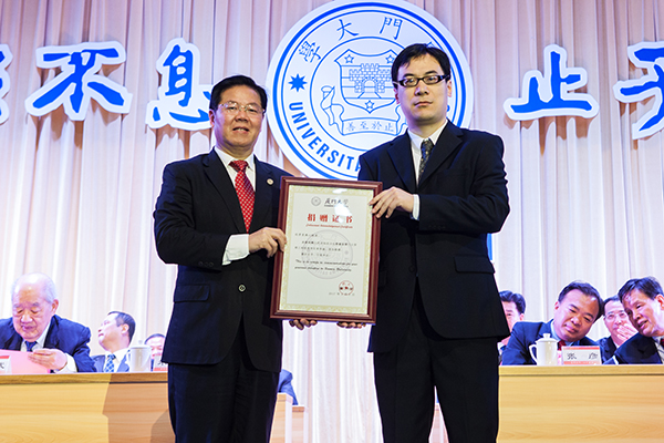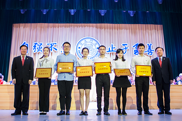 大会还举行了奖教金、通令嘉奖、奖学金颁奖仪式。副校长邬大光宣读了表彰决定。林祖赓教授、洪华生教授、张亦春教授、杨国桢教授获“南强杰出贡献奖”,《南强颂》剧组、校学生男子棒球队、校学生男子篮球队、校学生攀树队、校学生艺术团体育舞蹈队、厦门大学“i图视界”科技团队、厦门大学“桑德”科技团队、校智能车队、“助聋成龙”志愿服务项目团队获学校“通令嘉奖”,1132位学生、338位老师和7个课题组分别荣获2017年度厦门大学校庆期间各项校级奖教金、奖学金。校领导和嘉宾为获奖者颁奖。