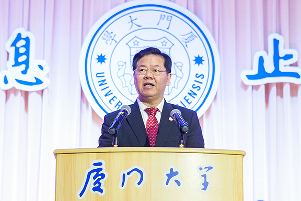 今天是建校96周年庆祝大会,也是厦大“双一流”建设动员会。中国要建成现代化的社会主义强国,必须要有一批世界一流大学。厦门大学理所当然要成为其中的一员。96年来,厦大人建设世界一流大学的理想从未动摇过,探索世界一流大学的努力从未停止过。可以说,创建世界一流大学已经成为全体厦大人最广泛的共识、最坚定的理想和最强大的动力。面对国家全面建成小康社会、实现中华民族伟大复兴的历史机遇,我们深切感受到,我们比历史上任何时期都更接近这个目标,比历史上任何时期都更有信心、有能力实现这个梦想,我们必须以实际行动迎接挑战、实现梦想。