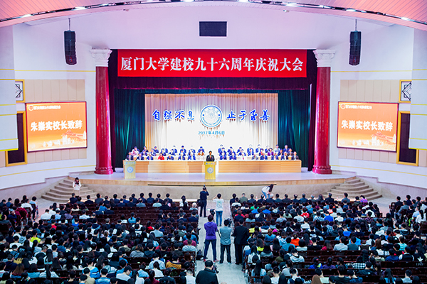 4月6日上午,厦门大学建校九十六周年庆祝大会隆重举行。海内外嘉宾、校友和师生代表共3000余人,欢聚建南大会堂,共同庆祝厦门大学96周年校庆。