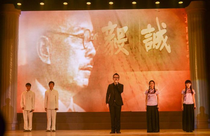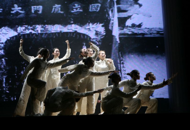 在随后上演的情景剧《群贤毕至》中,由学生演员扮演的鲁迅、林语堂等人物让观众们看到了一个在上世纪三十年代汇聚天下英才的厦大。而在第一篇章的最后,舞蹈《追寻》则反映了中国共产党在厦门第一个支部的建立以及支部书记、厦大学子罗扬才的英雄事迹。