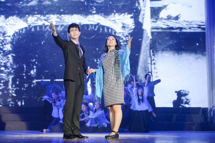 进入第二篇章《烽火自强》,在日本侵略者的步步进逼下,厦大内迁长汀,在艰苦的条件下继续办学,并不断地创造着辉煌的成绩。舞蹈《八百里足迹》描绘了厦大内迁长汀的图景,而朗诵《烽火情书》则塑造了内迁长汀时期萨本栋校长甘于奉献的光辉形象,感人至深的朗诵也引起了在场观众的强烈共鸣。