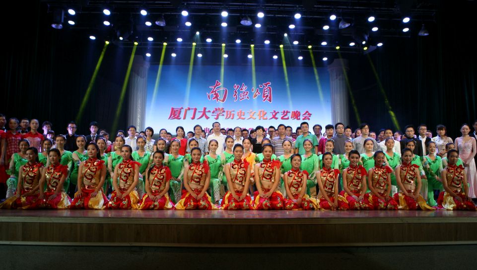 10月11日晚七时许,学校师生齐聚一堂。在厦门大学建南大礼堂,上演了一台由厦门大学学生艺术团倾力奉献的文艺晚会《南强颂》。晚会共十七个节目,由舞蹈,合唱,诗朗诵,舞台情景剧组成,共四个篇章,分别为“爱国伟业”,“烽火自强”,“英雄大学”和“学府春潮”。演员们用精彩纷呈的节目再现了我校老一辈开创者艰难坎坷的办学之路和新一代建设者奋发图强的强学之路。