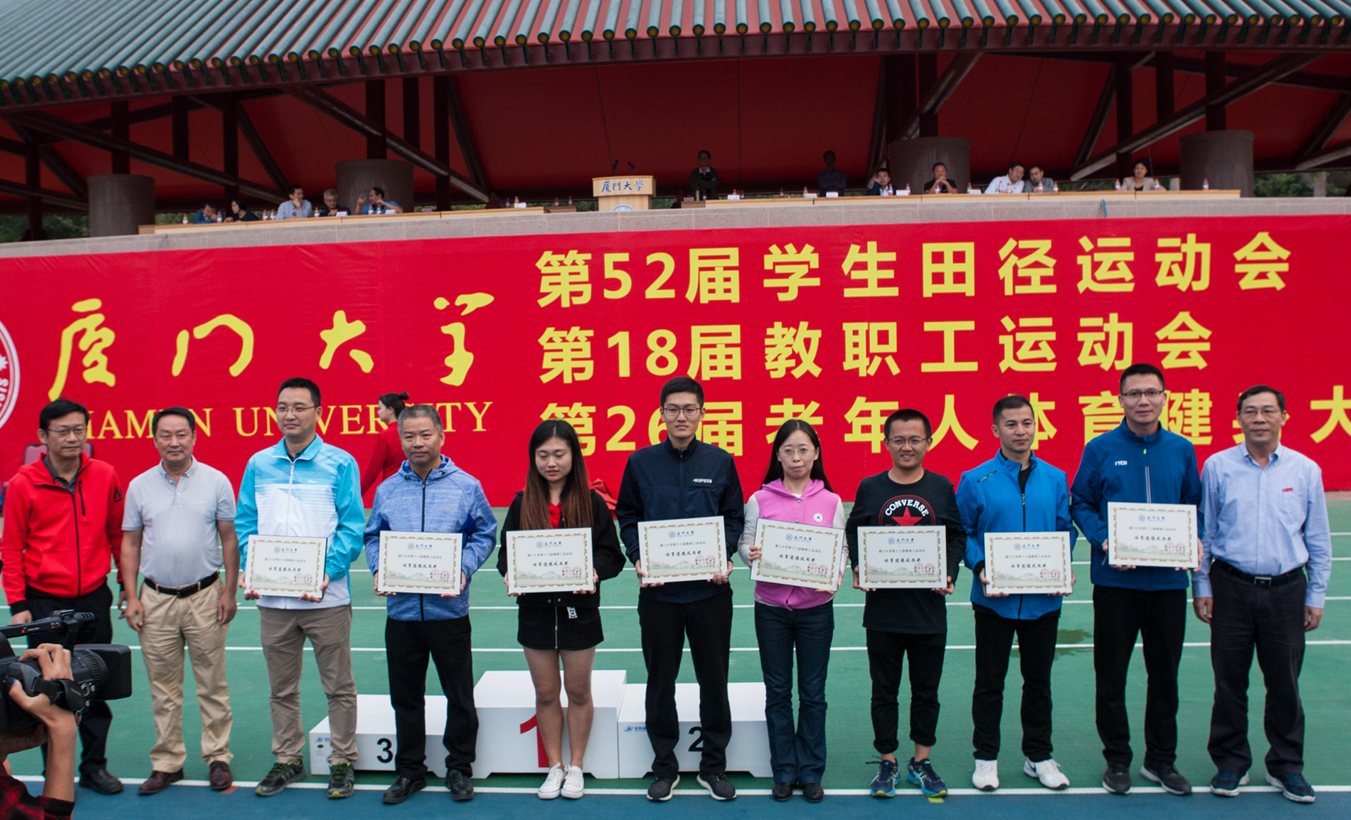 经过激烈角逐,在学生团体总分排名中,经济学院以总分5183分的总成绩蝉联团体总冠军,管理学院和人文学院分别以总成绩4910.5分和4533.5分名列亚军和季军。信息科学与技术学院、化学化工学院、物理科学与技术学院进入团体总分前六强。校党委副书记、副校长李建发为获奖团队颁奖。此外,在本科生男子组4×400米接力比赛中,新闻传播学院以3’32’’69的成绩打破我校3’37’’1的记录。管理学院、人文学院、信息科学与技术学院、公共事务学院、建筑与土木工程学院、马克思主义学院、教育研究院、台湾研究院等获得体育道德风尚奖。