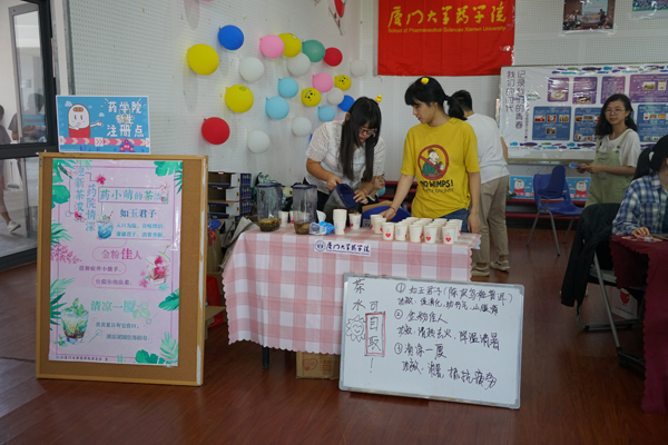 药学院发挥专业特色,自制各色特色凉茶。