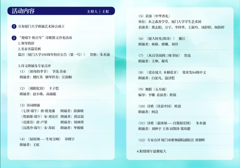 19:30 “迎端午 盼百年”厦门大学诗歌散文沙龙活动