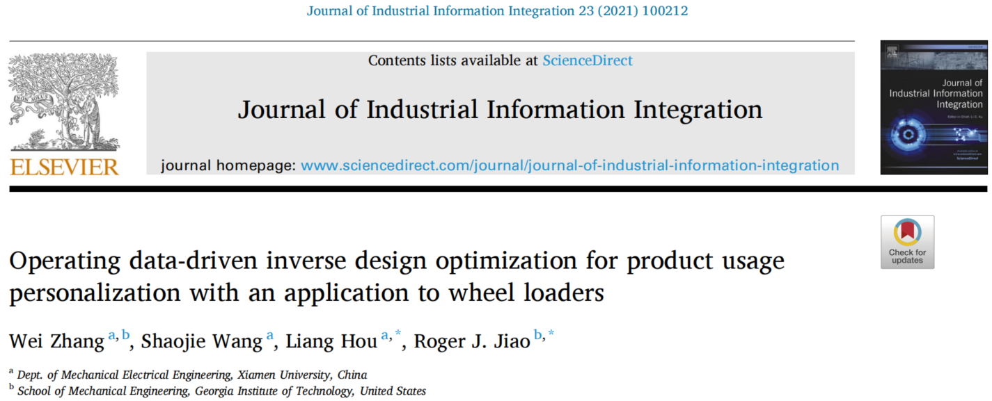 Elsevier出版集团旗下《Journal of Industrial Information Integration》国际期刊,近日发表航空航天学院机电工程系侯亮教授课题组最新研究成果:Operating data-driven inverse design optimization for product usage personalization with an application to wheel loaders.