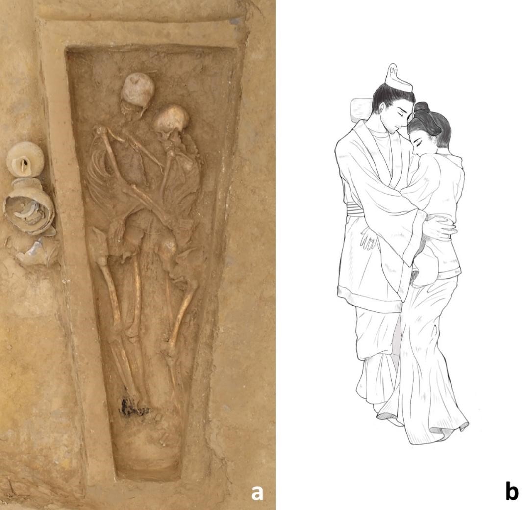“拥抱葬”这一独特的文化现象在世界范围内有着超过6000年的历史,从意大利的“瓦尔达罗情人(The Lovers of Valdaro)”到希腊的“阿勒波特里帕的拥抱(The Embracing Skeletons of Alepotrypa)”,“拥抱葬”反映了不同文化背景下,古代人类的生死观和对于美好爱情的追求。该项研究成果由大同市考古研究所、吉林大学、厦门大学、美国德克萨斯A&M大学等多个单位的考古学家共同合作完成,是生动反映我国古代民族融合背景下人们对于爱、生、死和来世的看法等社会思潮的具体物化证据,体现了生物考古学研究在阐释人类古代社会生活方面的巨大潜力。