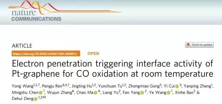 近日,能源材料化学协同创新中心(iChEM)邓德会研究员团队在“铠甲催化”研究方面取得新进展,该团队创新地将Pt纳米颗粒负载在石墨烯封装的CoNi铠甲催化剂(PtǀCoNi)上,利用CoNi的电子穿透效应对Pt-石墨烯界面处的电子结构的精确调控,在室温下实现了CO的高效氧化。相关研究成果以“Electronpenetration triggering interface activity of Pt-graphene for CO oxidation atroom temperature”为题,发表于Nature Communications(Nat.Commun. 2021, 12, 5814)。