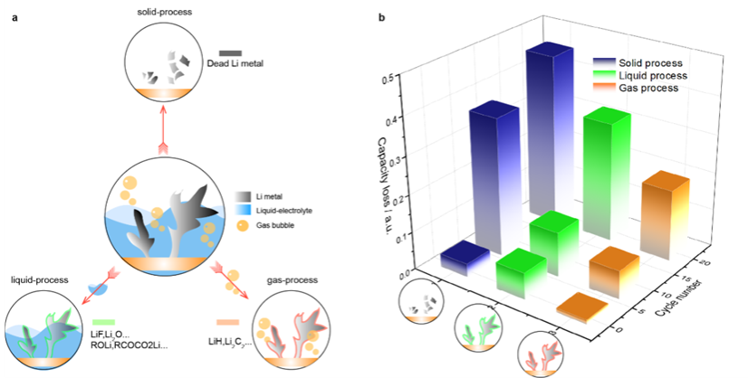 液态锂金属电池中锂金属与液体电解质之间的副反应,使得活性锂持续转化为“死锂”金属和固体电解质界面相(SEI),从而造成锂金属电池的快速容量衰减。因此,探索这些“死锂”金属及非活性锂物种的组成、功能和形成机制对于理解锂金属电池的失效机制至关重要。但是研究具有复杂成分的SEI对目前大多数分析技术都极具挑战。