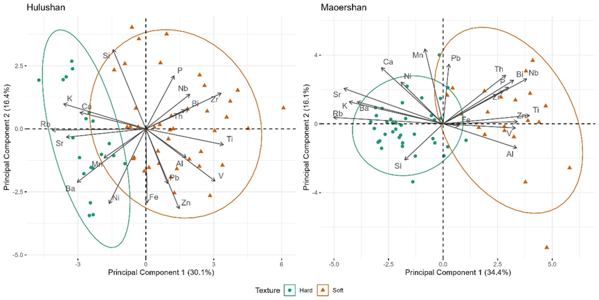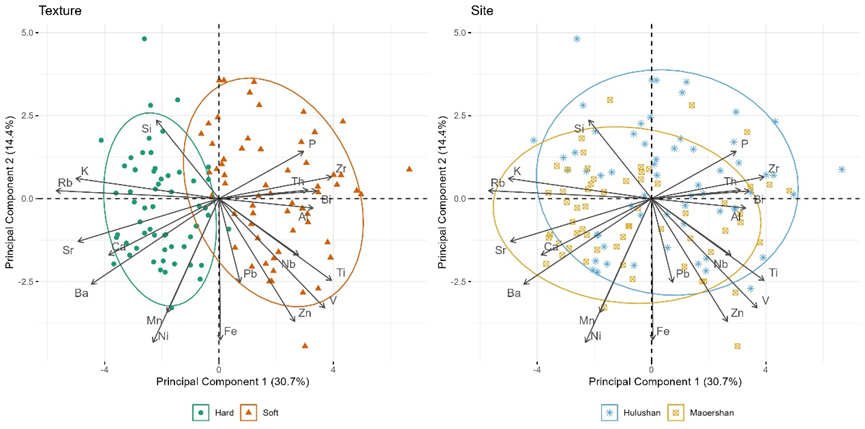 这项研究首次使用便携式X射线荧光光谱仪(pXRF)对距今4000-3500年前福建浦城县猫耳山窑群(2005年“中国十大考古发现”)和武夷山市葫芦山窑群出土的马岭类型黑衣陶进行化学成分分析,讨论了闽北地区两个可能的区域生产中心的黑衣陶生产特点。研究发现,虽然猫耳山和葫芦山所处的闽北山区环境复杂,两个窑群相隔较远,但其黑衣陶产品的化学成分具有高度一致性。这一发现表明两个窑群共享制陶技术和知识,且两个窑群所代表的人群可能同属于一个更大的社会体系。此外,两地陶工都有意识地生产两种不同质地的产品,这进一步暗示了当时可能存在的社会分化和等级差异。
