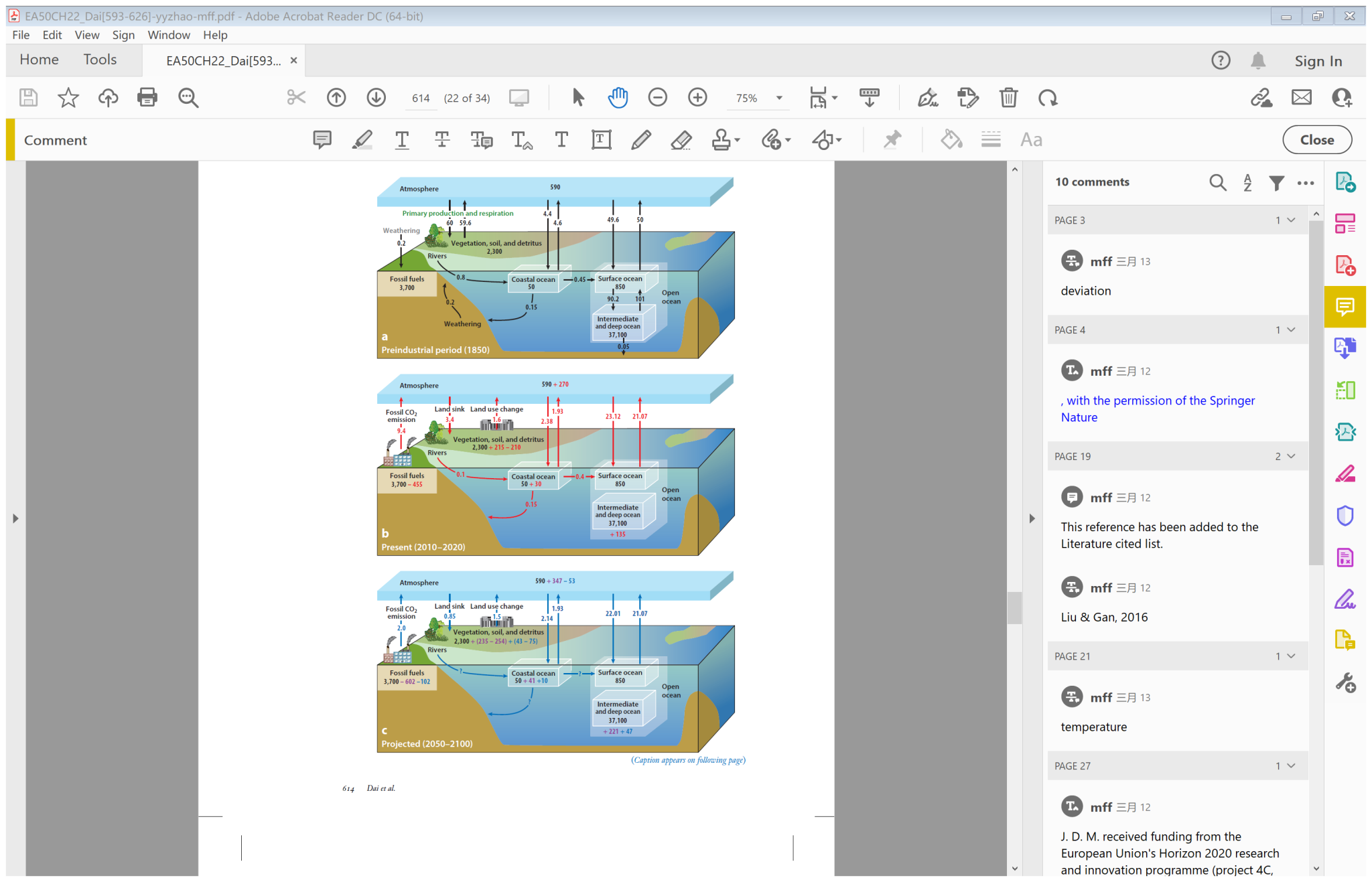 最后,作者系统分析了从工业革命前到现今,再到未来实现碳中和这三个阶段的全球碳循环(包括各碳库储量和碳库之间的碳通量)演变过程。同时提出以净零排放为目标的人为扰动,可从不同界面,对陆-海-气这一耦合、协同变化系统产生影响,这也是研究近海碳循环未来变化趋势的关键挑战。