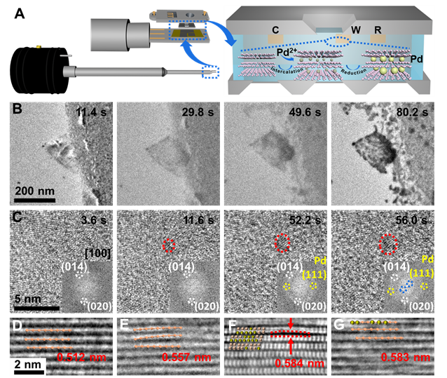 近日,我校化学化工学院廖洪钢教授课题组与合作者在电化学原位液相透射电镜技术的相关研究中取得重要进展。相关成果以“Pd-intercalated black phosphorus: An efficient electrocatalyst for CO2 reduction”为题发表在Science Advances(DOI:10.1126/sciadv.adn2707)。