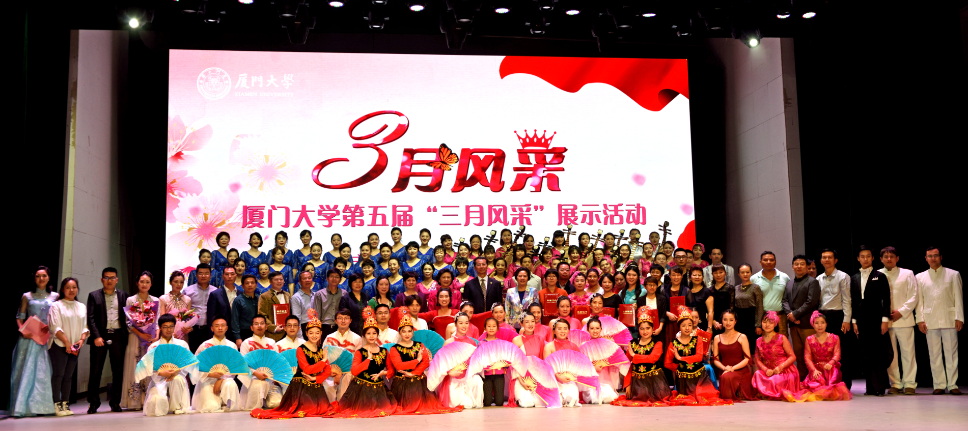 4月20日晚,由校工会、校妇委会联合主办的第五届教职工“三月风采”展示活动在建南大会堂举行。厦门市妇联党组书记、主席吴亚汝,厦门市妇联党组成员、副主席朱秀敏,厦门市总工会党组成员、副主席陈幼萍,厦门市总工会党组成员、挂职副主席冯鸿昌,厦门市总工会女工部部长陈晓晖,我校党委副书记、纪委书记、工会主席赖虹凯,副校长詹心丽,党委常委、宣传部部长徐进功,校长助理张建霖,离退休处、校工会、校团委等有关部处领导、学院党政工妇等嘉宾和领导受邀出席了本次活动并观看了演出。