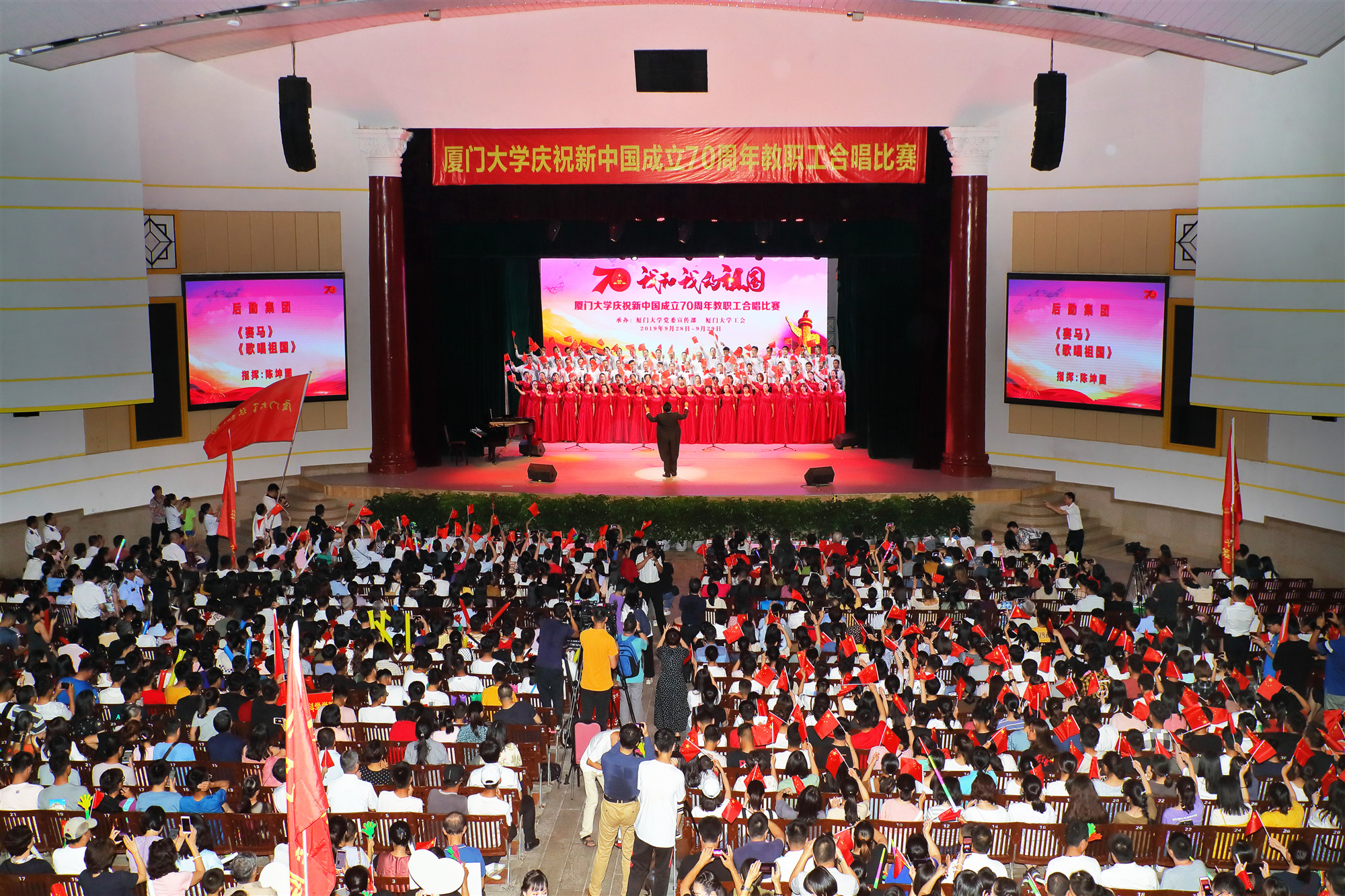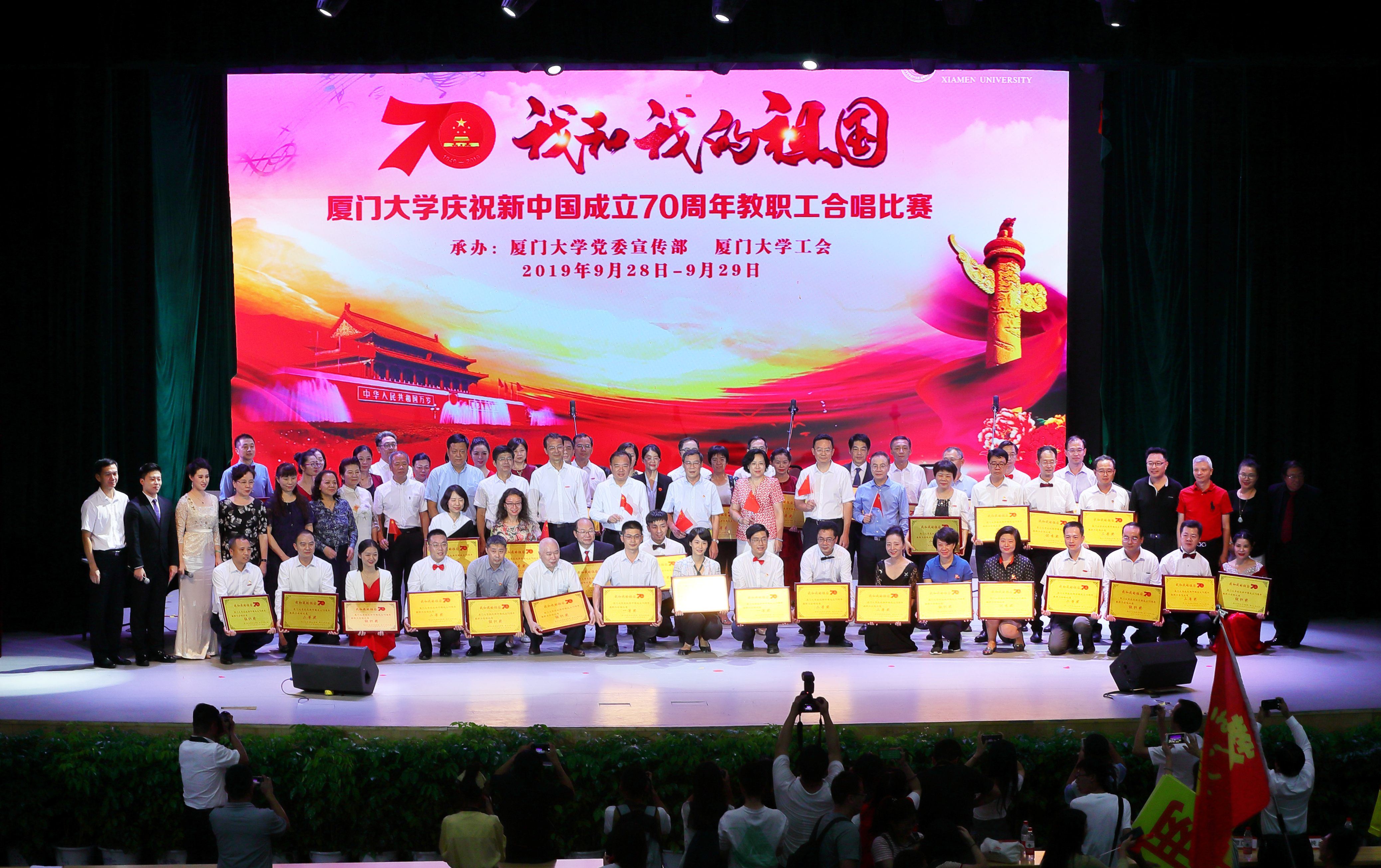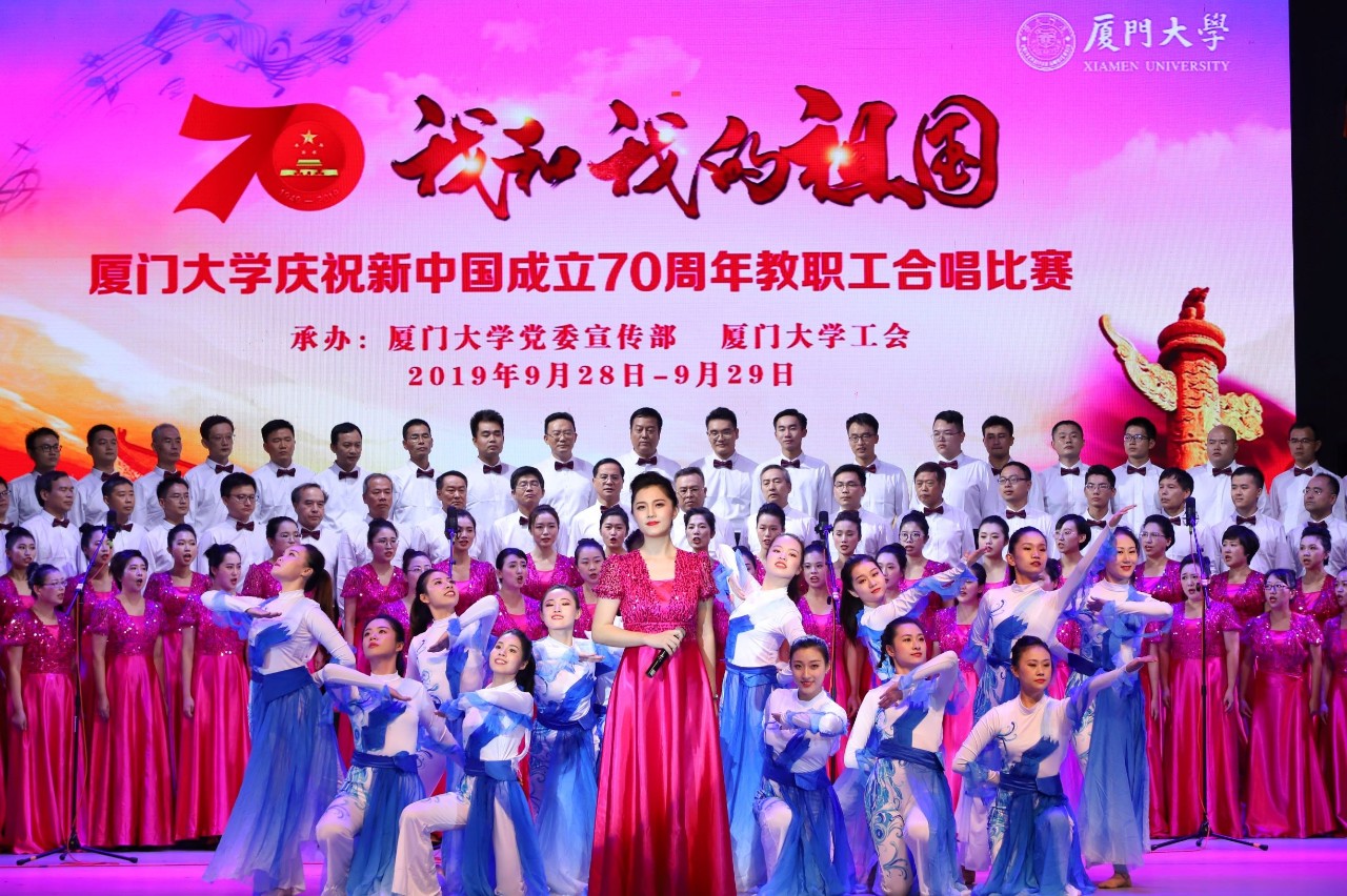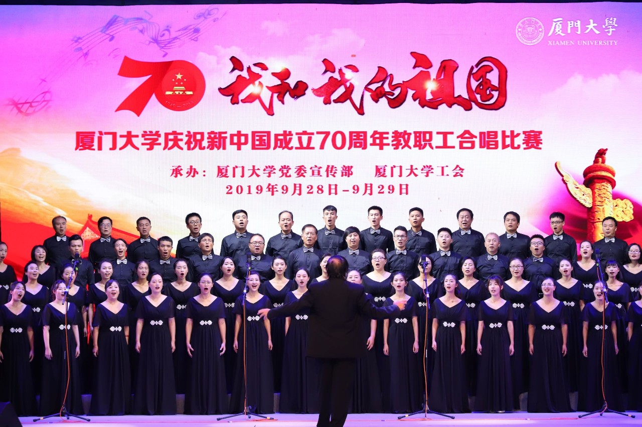 为庆祝新中国成立70周年,表达全体厦大人对祖国的热爱,激发干事创业热情,今年7月,校党委宣传部、校工会启动了“我和我的祖国”庆祝新中国成立70周年教职工合唱比赛。广大教职工热烈响应、踊跃参与,来自38个单位的共37支代表队、2700余名教职工参与其中。建南大会堂成为一个音乐的海洋,教职工们把对祖国最深沉的爱,化作动人的歌声和优美的舞蹈,为新中国的生日献上了最真挚的祝福。合唱比赛精彩纷呈,高潮迭起,博得现场观众一阵又一阵掌声,将学校庆祝新中国成立70周年系列活动推向了一个新的高潮。