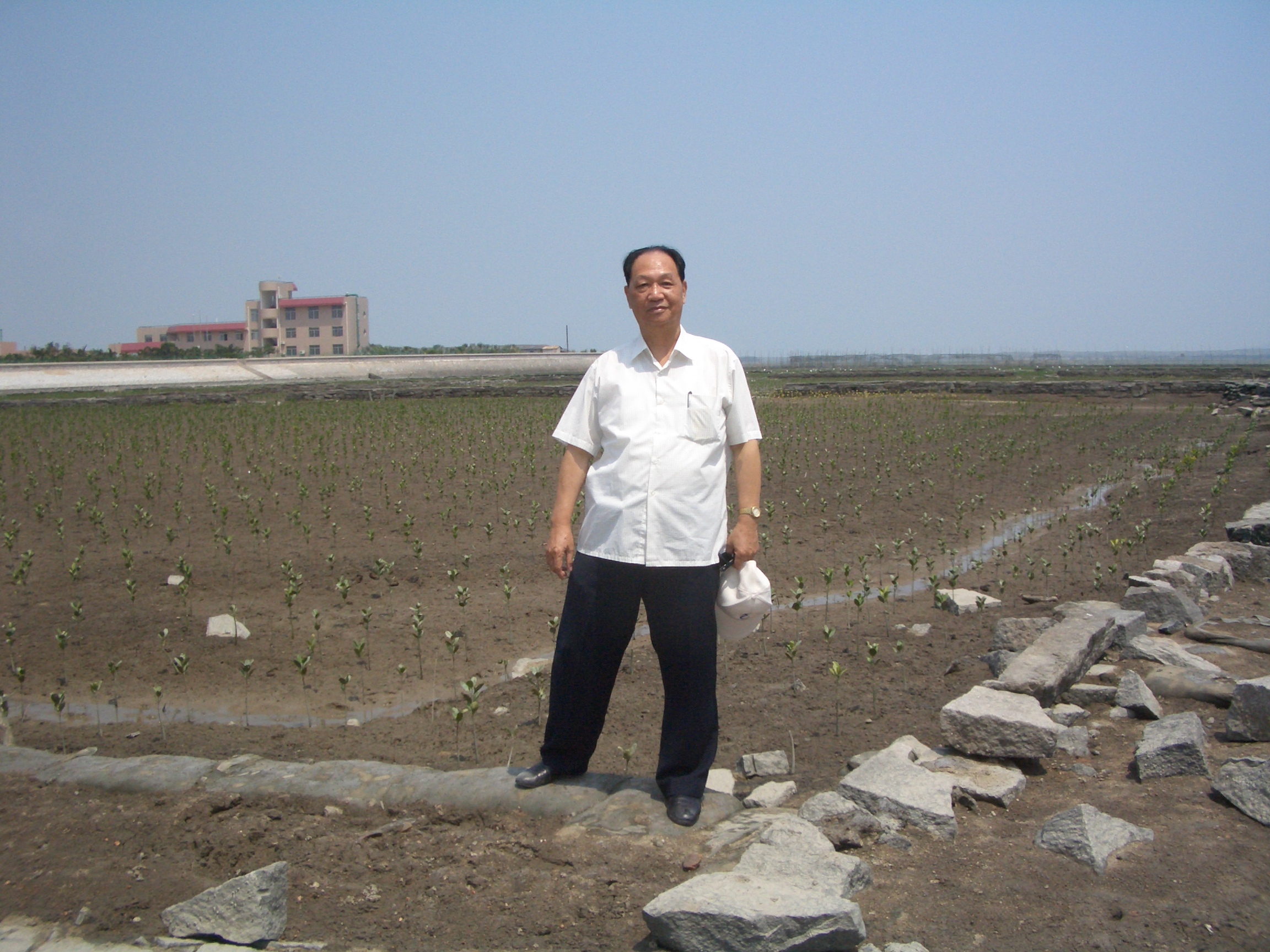2004年7月23日,林鹏到集美污水处理厂红树林修复现场检查苗木生长情况