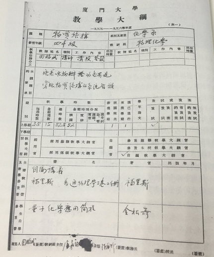 这是1955年-1956年第一学期的物质结构课程的教学大纲,是一张“会说话”的教学大纲。是它,向我们讲述了中国科学院院士、厦门大学化学化工学院教授田昭武从教生涯开始的故事,也是它,让我们感受到了田昭武先生从教70余年,始终不变的“继承、发展、超越”的教学科研理念。