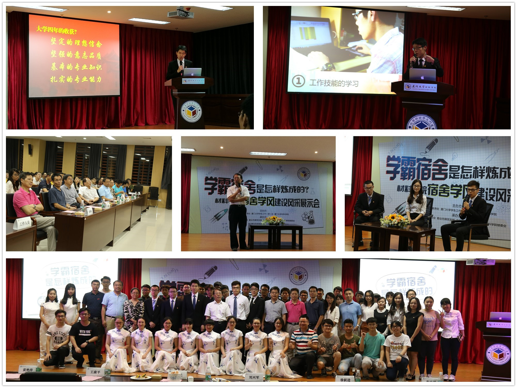 5月25日晚,在材料学院新楼二楼报告厅,教务处、学生处、材料学院共同主办的“学霸宿舍是怎样炼成的”宿舍学风建设风采展示会顺利举行。副校长邬大光,学生处副处长徐跃进,教务处副处长黄艳萍,材料学院院长刘兴军,党委书记王康平,青年教师代表、辅导员、以及150名本科生一起参加了活动。