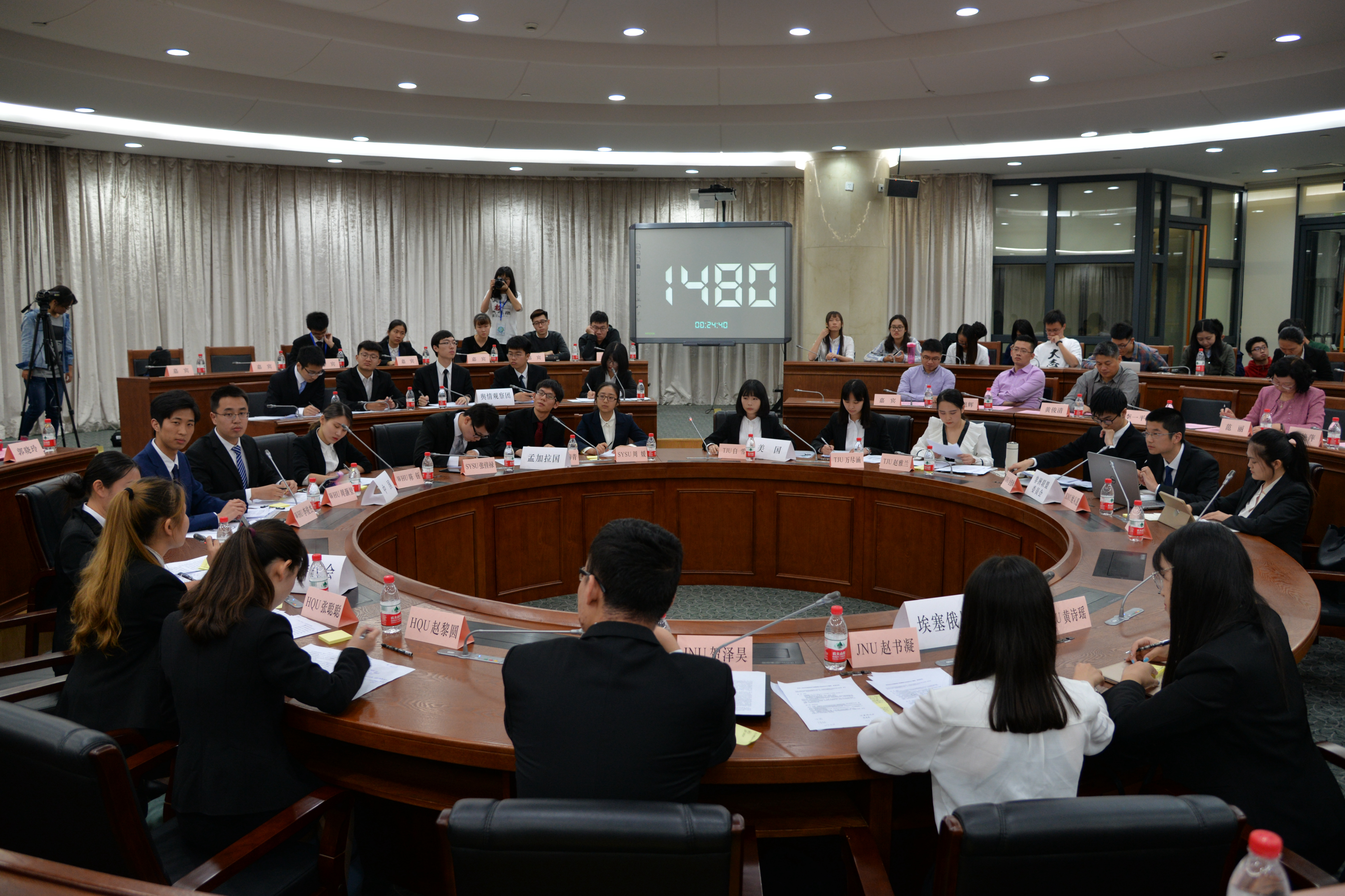此次模拟谈判围绕解决贫弱国家的粮食安全问题展开。厦门大学代表非洲联盟委员会、华侨大学代表欧盟委员会、暨南大学代表埃塞俄比亚、同济大学代表美国、武汉大学代表中国、中山大学代表孟加拉国。在陈诉立场、谈判、磋商、新闻发布、舆情观察团提问、总结陈词等环节,各国代表队群英荟萃、各显神通,欧盟娓娓而谈促合作,孟加拉国不卑不亢有原则,中国才辩无双谈发展,各国代表彰显了不凡的外交气度与风采。