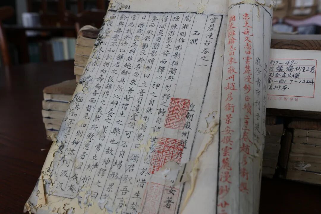▲厦大图书馆藏二十二卷《云麓漫钞》,棉纸十行黑格抄本,五函三十册(此书破损严重,现已列入本馆古籍修复计划)