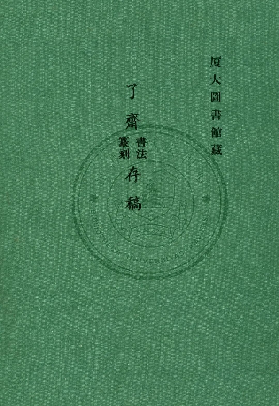 ▲厦门大学图书馆藏《了斋书法篆刻存稿》书封,作者自印本