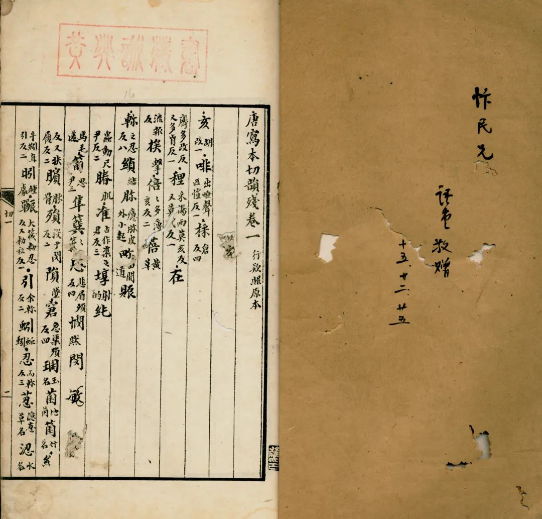 ▲黄典诚藏林语堂赠周辨明《切韵》残卷