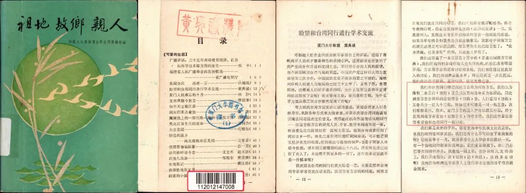 ▲黄典诚:《盼望和台湾同行进行学术交流》。刊载于福建人民广播电台对台湾广播部编《祖地故乡亲人》,出版时间不详。