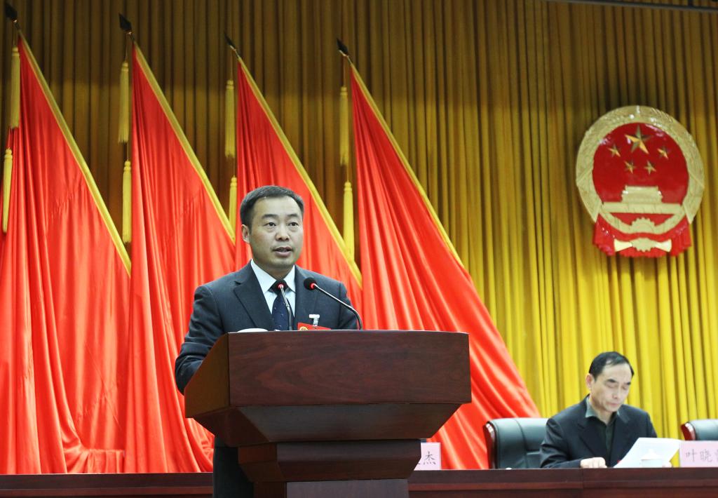 范德珩向人大代表汇报工作。