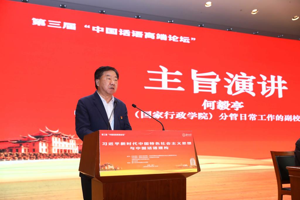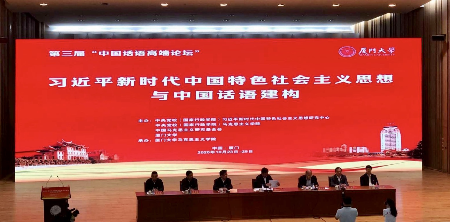 10月24日,第三届“中国话语高端论坛”在厦门大学科艺中心举行。本届论坛由中央党校(国家行政学院)习近平新时代中国特色社会主义思想研究中心、中央党校(国家行政学院)马克思主义学院、中国马克思主义研究基金会、厦门大学联合举办,厦门大学马克思主义学院具体承办。论坛以“习近平新时代中国特色社会主义思想与中国话语建构”为主题。