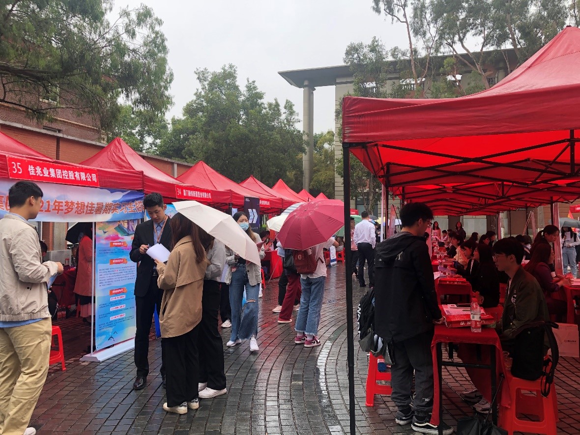为帮助2021届毕业生更加充分更高质量就业,拓宽在校学生就业实习平台,4月28日,厦门大学经济学院、王亚南经济研究院(下文统称:经济学科)2021年学生就业暨实习专场招聘会于三家村广场顺利举行。本次招聘会由学生处、经济学院和王亚南经济研究院主办,参展企业涉及银行、证券、期货、保险、财经、房地产、制造业等诸多领域,中国工商银行有限公司、厦门建发有限公司、厦门象屿集团有限公司、厦门航空有限公司、中国人寿保险股份有限公司、瑞达期货有限公司厦门分公司、海通证券股份有限公司福建分公司、厦门姚明集团有限公司等41家知名优质企业参与招聘会。在筹备招聘会的过程中,经济学科深入挖掘用人单位实习生需求,积极主动邀请用人单位来校招聘。各参展企业共提供300余个应届生岗位和100多个实习生岗位。应聘人数约500人,涵盖了经济学、金融学、国际经济与贸易、统计学、财政学等经济类及其他专业领域。