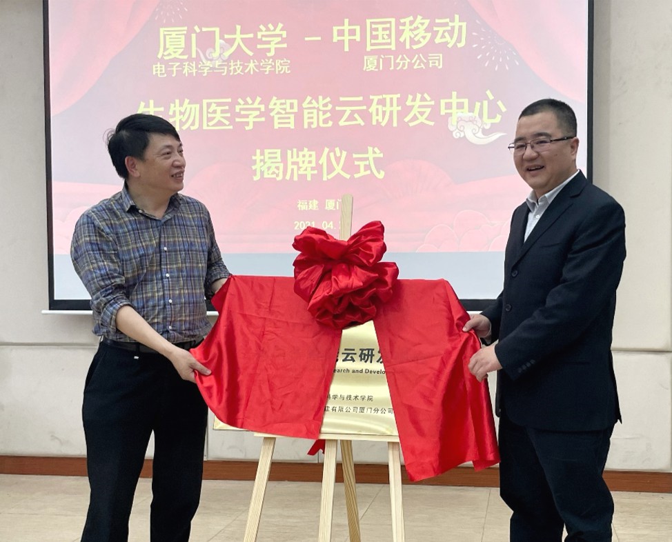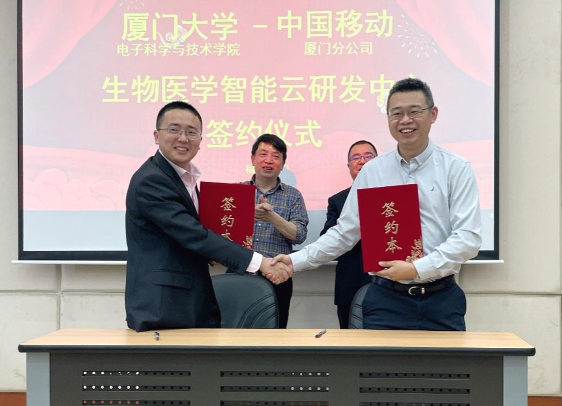 4月29日下午,中国移动通信集团福建有限公司厦门分公司与我院共建“生物医学智能云研发中心”签约暨揭牌仪式在海韵园隆重举行,中国移动通信集团福建有限公司厦门分公司副总经理尤琦、政企客户部经理涂国华、政企客户部副经理林寒毅、思明营销中心副经理郭毅,学院院长陈忠、电子科学系骨干教师等出席仪式。仪式由中心主任屈小波教授主持。