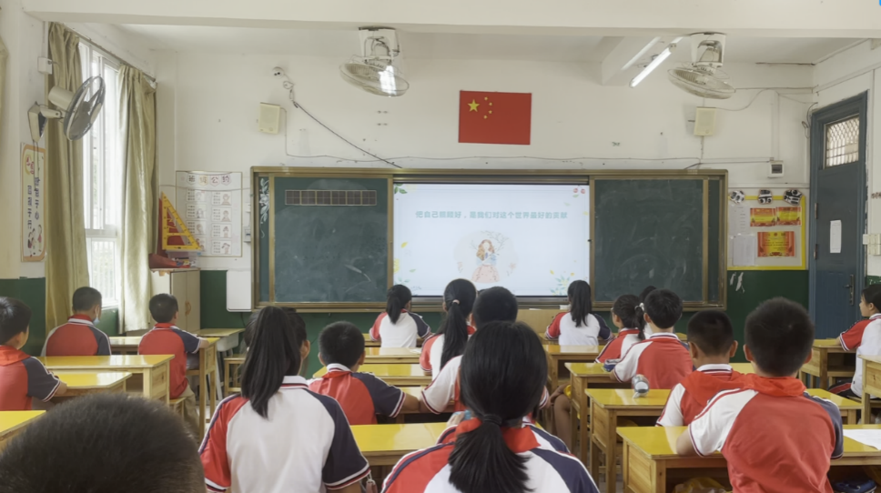 心理健康教育是乡村小学的一个短板,基于此,实践队员为孩子们带来了心理健康课和心理团体辅导。实践队员以视频《阿弗莱德与影子》作为引入,帮助学生们了解自我关怀的概念,引发他们对自我关怀的思考和联想。为了引导学生启动自我关怀的力量,队员们以“自我关怀”为主题,带领孩子们进行了一次别开生面的团体心理辅导,引导学生分享自己在日常生活中的经验、疑惑和困难。学生们依序发言,纷纷表达了他们对自我关怀的看法,并一致认为自我关怀是快乐生活的重要力量。在活动的第二个环节,两位学生分别扮演“自我苛责”和“自我关怀”的角色,进行了沉浸式情景模拟,更加直观、生动地展示了自我关怀的力量。课程最后,学生们纷纷表示每个人都可能遇到逆境和挫折,要善于运用自我关怀的力量勇敢面对。
