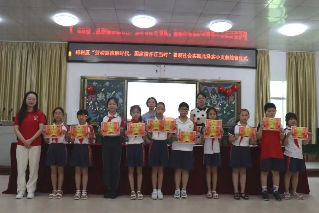 “阳春布德泽,万物生光辉”。初到光泽,“榕树厦”实践队员们怀着赤子之心与教书育人的理想,怀着青年一代对少年一代的守望,去传承,去小心翼翼地靠近每一颗稚嫩的心灵。在实践活动结束之际,光泽县实验小学的孩子们纷纷表达着不舍之情,不少学生拿起刚刚领到的奖状,找老师签名留念,拥抱告别。在这次的实践活动中,学生们收获了知识,收获了友谊,也收获了快乐。教育,从不是单向的传递,在这次的支教活动中,实践队员们也收获了成长。