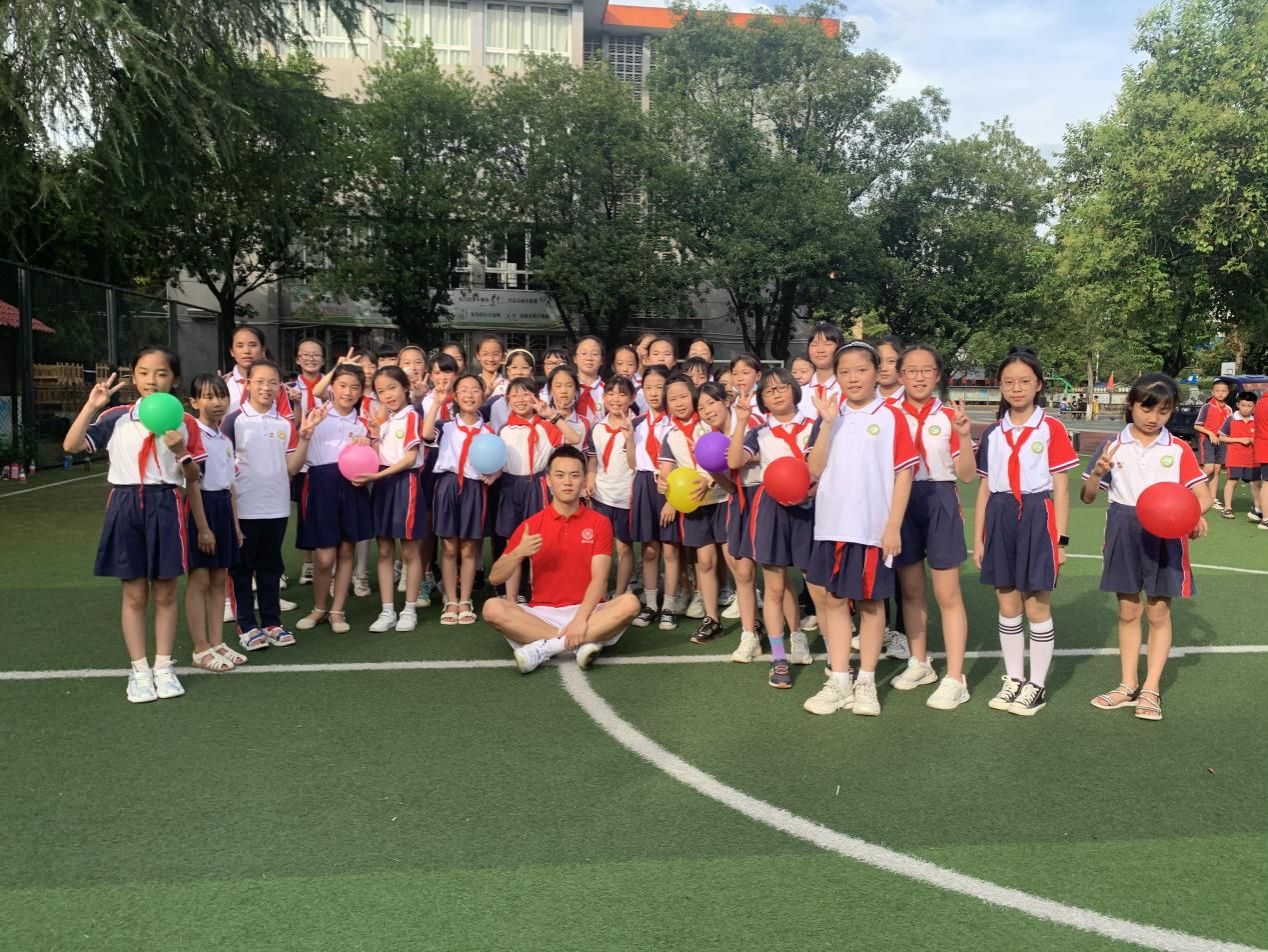 走出教室,实践队员们引导学生前往操场开展阳光体育活动,充分的热身准备之后,学生们积极投入到紧张而又刺激的运送气球比赛中,现场一片欢声笑语,学生在同伴的鼓励和帮助下完成了一次次的比赛,收获了友谊,体会到了户外运动的乐趣。