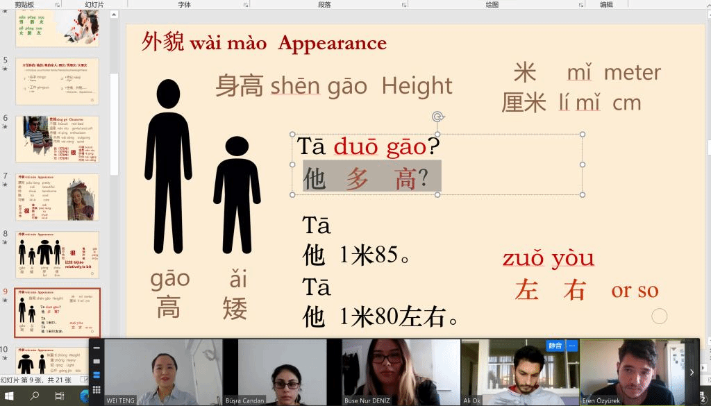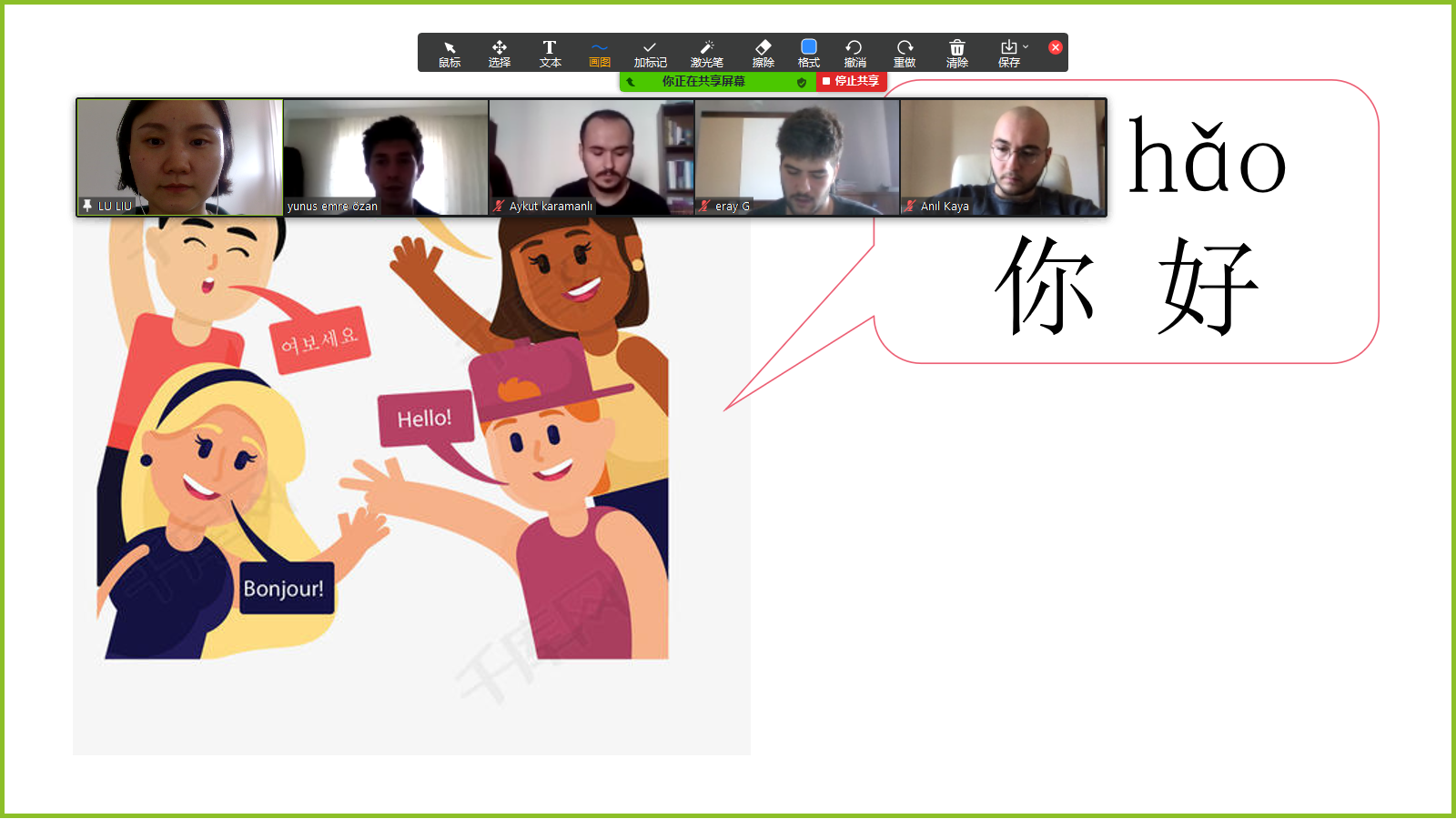 中东技术大学决定继续采用网络教学的形式,另外为了改善网络教学质量,学校购买了Zoom、Webex等会议软件的版权,并为每位教师注册一个账号,这个消息也让孔院教师们高兴了一阵,因为之前困扰大家的Zoom时间限制(40分钟)的问题,终于得到彻底解决。由于上学期积累了不少网络教学经验,加上学校为老师们购买了Zoom的版权(专业版),孔院教师们充分利用ODTUclass(中东技术大学网络教学平台)、Zoom等平台进行丰富多彩的汉语教学。新学期伊始,孔院老师们鼓足干劲、认真备课授课,学生们上课积极踊跃,课堂氛围活跃,新学生们纷纷表示汉语课非常有意思,会继续坚持学习汉语、了解更多中国文化。