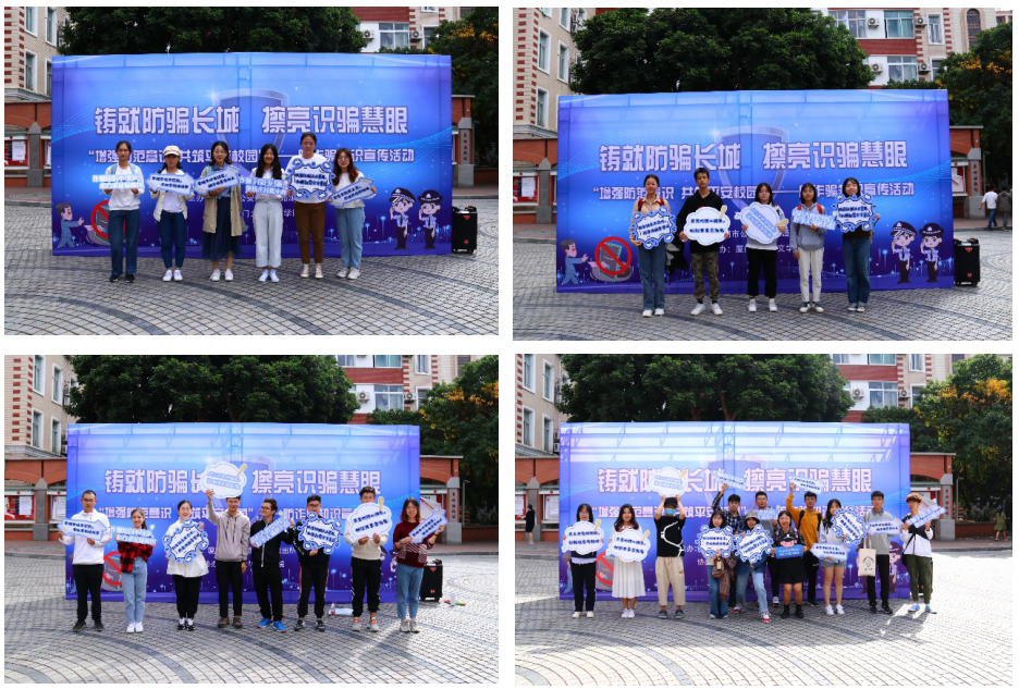 铸就防骗长城,擦亮识骗慧眼。构筑平安校园需要每一位同学树立防范诈骗风险的意识、小心甄别应对诈骗“套路”。此次宣传活动不仅增进了同学们对防诈骗相关知识的了解,还丰富了同学们应对诈骗行为的措施,增强了同学们的辨别与防范能力,取得了良好的反响。希望在今后的生活中,同学们能够擦亮双眼,提高警惕,有效防范诈骗的发生,进一步维护自身切身利益,为建设和谐安全校园添砖加瓦。