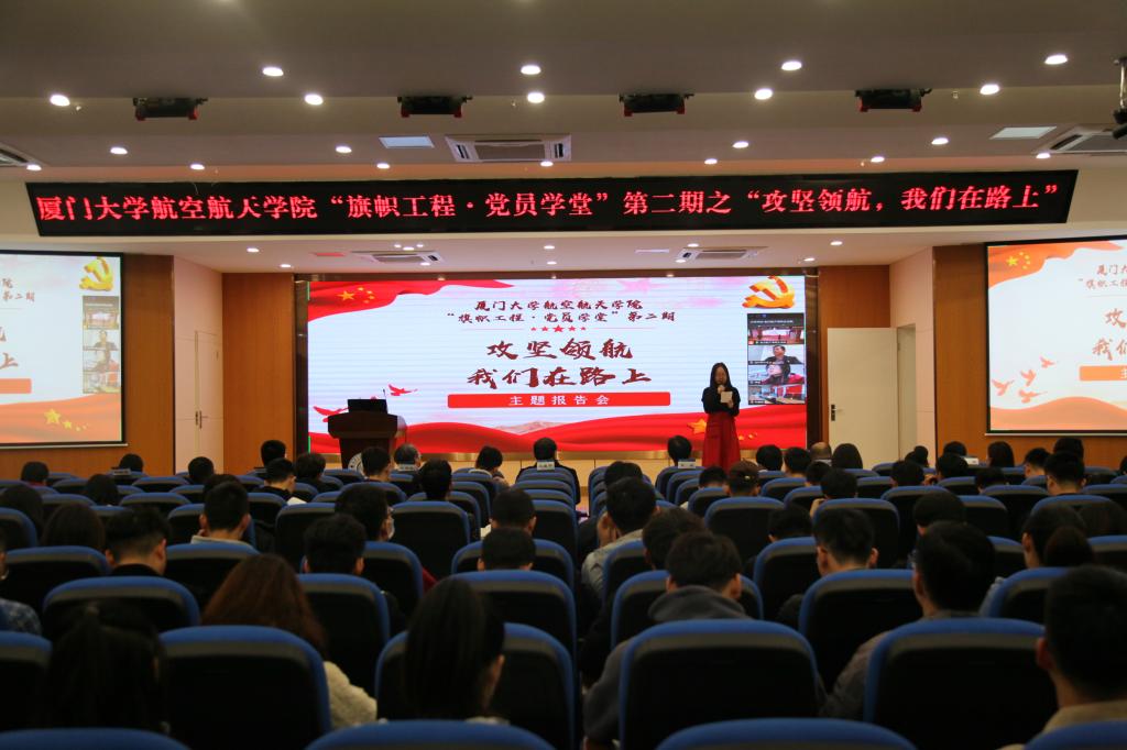 为学习贯彻习近平总书记关于脱贫攻坚的重要讲话精神,在《中共中央国务院关于打赢脱贫攻坚战的决定》发布5周年之际,12月14日下午,航空航天学院举办“旗帜工程·党员学堂”第二期之“攻坚领航,我们在路上”主题报告会。校党委组织部副部长乔连全、学生工作部副部长高斌、科技处副处长陈林、翔安校区团工委书记兼校团委副书记林蕊,航空航天学院党委书记王康平,航空航天学院党委副书记张晴、林蔚等出席报告会,学院学生党员参加报告会。