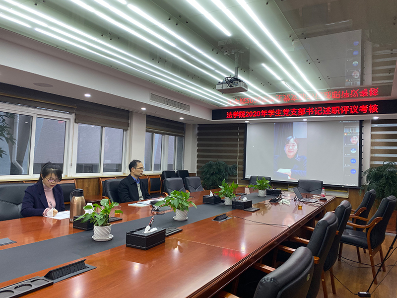 为进一步推动全面从严治党向纵深发展,引导学院广大学生党员以良好精神面貌迎接建党、建校100周年,2月2日下午,法学院党委组织召开2020年度学生党支部书记述职评议报告会。法学院党委副书记郭锦星、张伟出席报告会,学院党委组织员、各年级辅导员和党委青年干部参加报告会,26个学生支部书记通过线上、线下结合的方式展开述职。