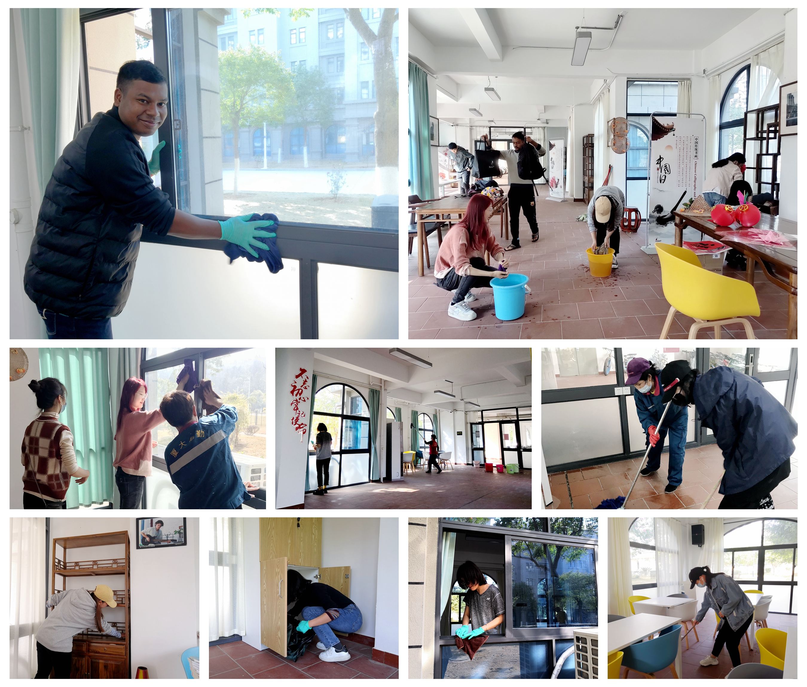 一站式学生社区是学生重要的文化活动场所之一,社区的文化建设对学生成长有着潜移默化的影响。学院以“除尘•布新”迎新春活动为契机,组织留校中外学子探索劳动教育模式,通过举办具有学院特色的文化活动为社区文化建设添砖加瓦,以崭新的面貌迎接建党百年和建校百年。