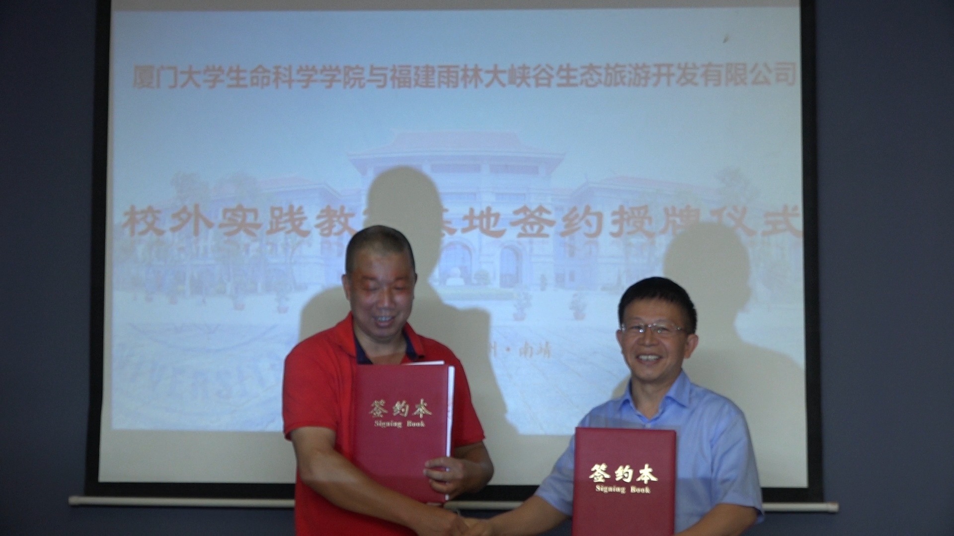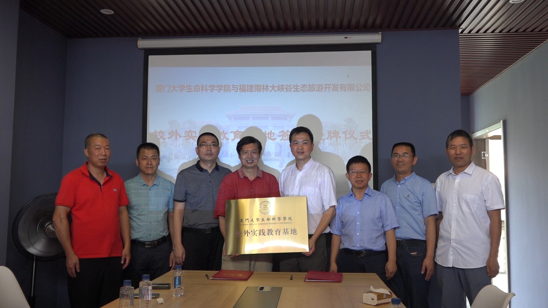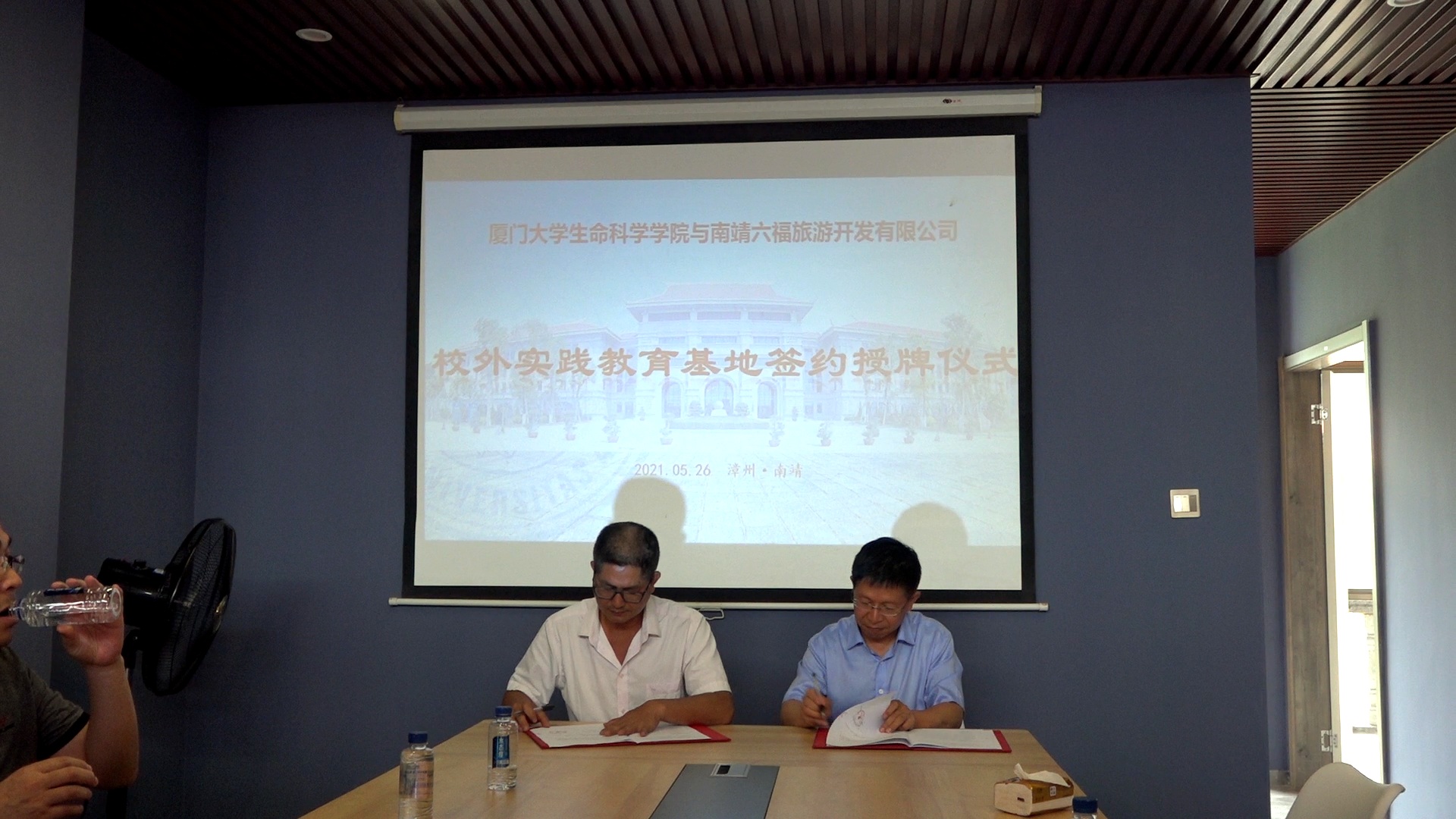 2021年5月26日,生命科学学院与福建雨林大峡谷生态旅游开发有限公司、南靖六福旅游开发有限公司的实践教育基地签约授牌仪式在南靖县和溪镇举行。学院副院长李勤喜、副书记张宇斌,南靖县林业局局长庄忠鹏、和溪镇党委书记戴海鹅,福建雨林大峡谷生态旅游开发有限公司董事长邱泽有,南靖六福旅游开发有限公司董事长古荣桂等参加仪式。