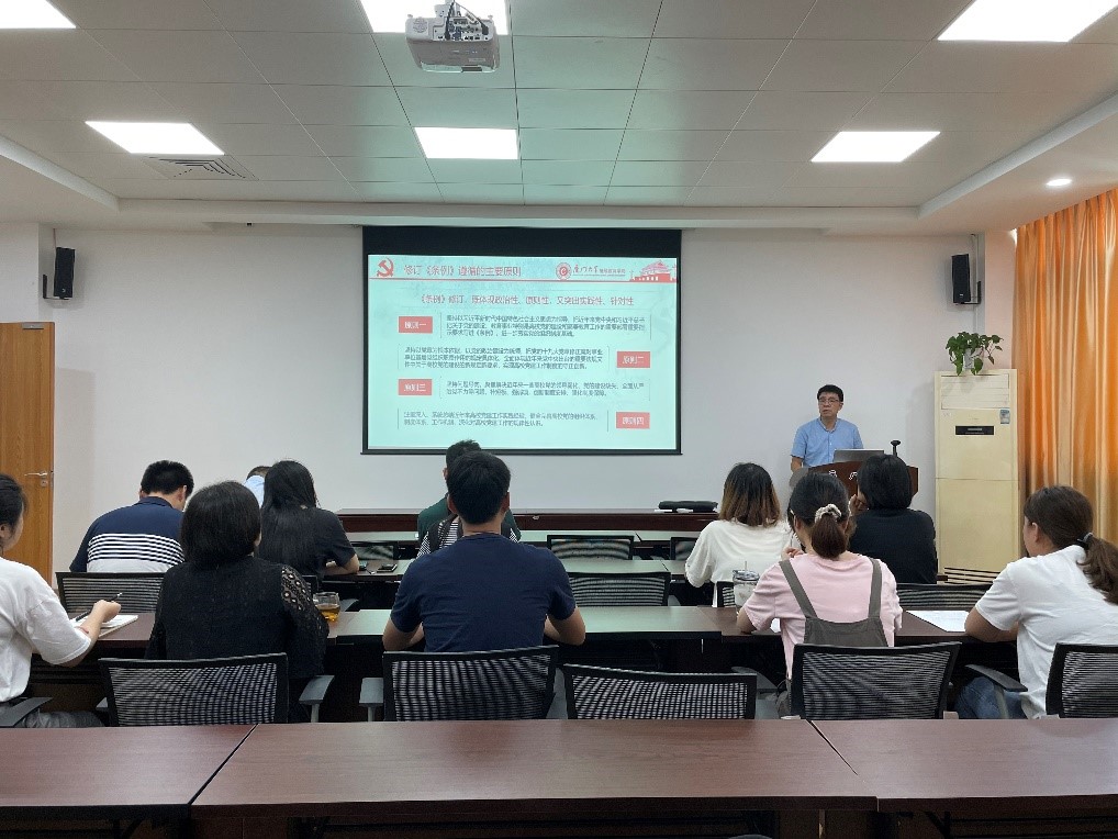 全面深入广泛学。为进一步推进《条例》贯彻落实,确保学习全覆盖,5月28日,学院党总支党校组织全院党员在厦大海韵学生公寓二期食堂306会议室开展理论宣讲活动。学院党总支书记邱旺土同志担任宣讲人,以“学习新条例 展现新作为”为主题,围绕条例修订的背景、过程、意义,修订条例遵循的基本原则,通过新旧条例对比讲解的方式,对新条例全文进行了解读。各支部通过“三会一课”“固定党日+”等制度自行组织开展《条例》学习,教育引导党员深入领会《条例》的主要内容和重要意义。
