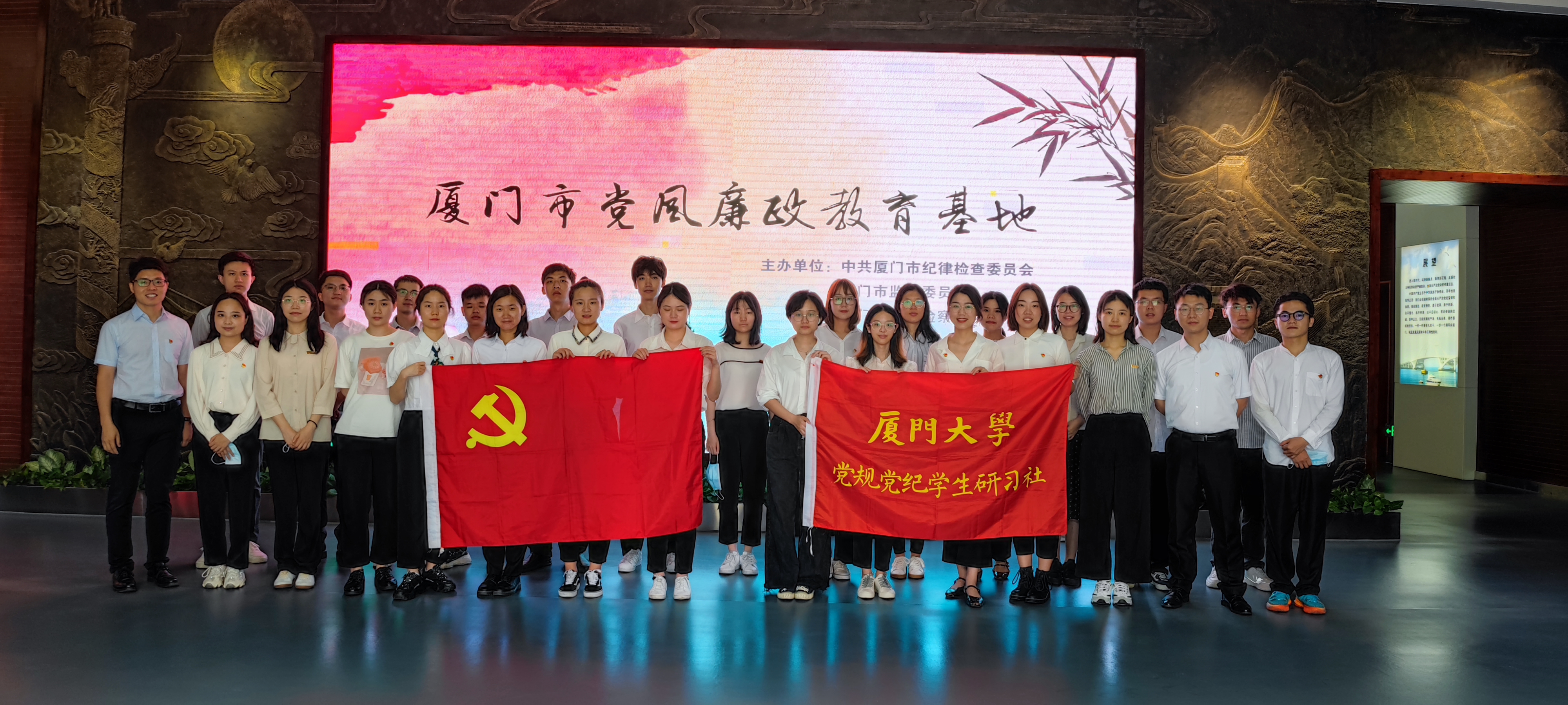 厦门大学党规党纪学生研习社是厦门大学法学院党委和厦门大学党内法规研究中心为学习宣传贯彻十九大精神和党章修正案,落实校党委关于加强和改进新形势下思想政治工作实施意见而成立的学生组织。社团自成立以来积极抓思想淬炼,聚焦主题教育,围绕党规党纪,组织开展了一系列质量好、水平高、影响广的活动,注重社团骨干成员培养,锻造出一届又一届专业的“廉政先锋团队”,充分体现了厦门大学法学院培养德法兼修法治人才的决心。今后,党规党纪学生研习社将继续引领广大社团成员以廉修身、以身作则,积极推进大学生廉洁文化建设,为营造风清气正、文明和谐的高校校园氛围贡献力量。