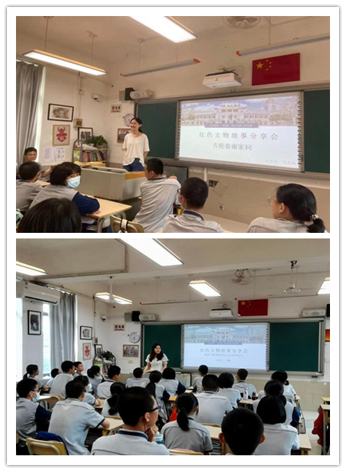 在十三班,马念怡同志为大家介绍了吉庇巷谢家祠,讲述了谢翔高的革命故事,同时也强调了文物保护的重要性。王璐同志为同学们讲述了杨世宁临行前留给父亲的绝笔书背后的故事,告诉同学们“伟大胜利的背后是无数英雄烈士用鲜血铺就的道路。”