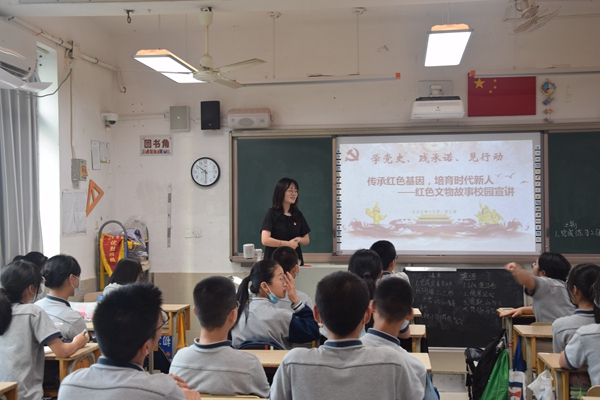支部成员选取了各具特色的革命文物,分为四个小组进入厦门六中初二的四个班级进行宣讲,与同学们一起在对红色文物的诉说中感悟共产党人的初心和使命,让红色文化资源真正活起来、新起来。宣讲员们深入浅出的讲解,引发了热烈的课堂讨论,赢得了同学们的一致好评。