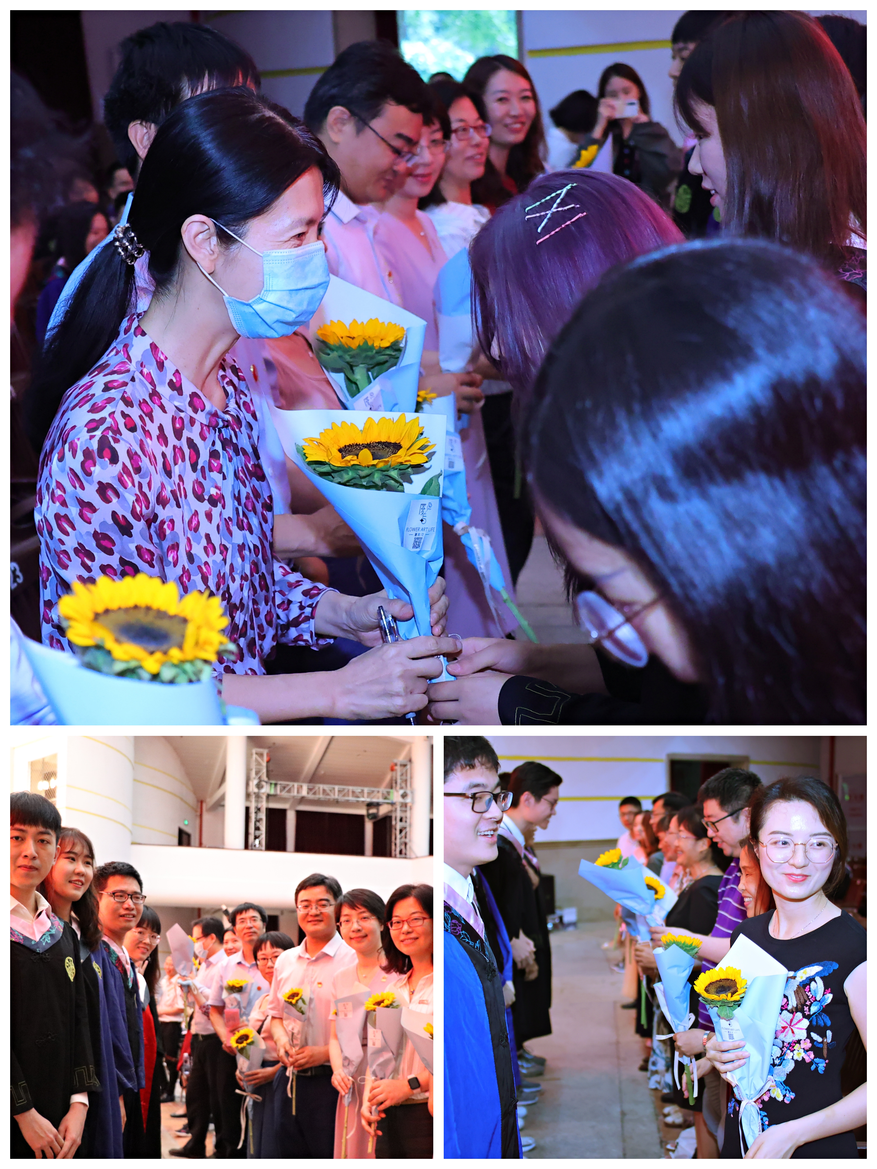 经济学院博士生导师潘越作为教师代表发言。她用“一百”作为主题词送上临别寄语,动情讲述了中国共产党、厦大精神与厦大经济学科“三个一百年,一个中国梦”的时代背景,为毕业生送上三个“一百分”:愿有一百分的信心去迎接挑战;携母院一百分的支持;带老师一百分的祝福,迈向精彩的人生。