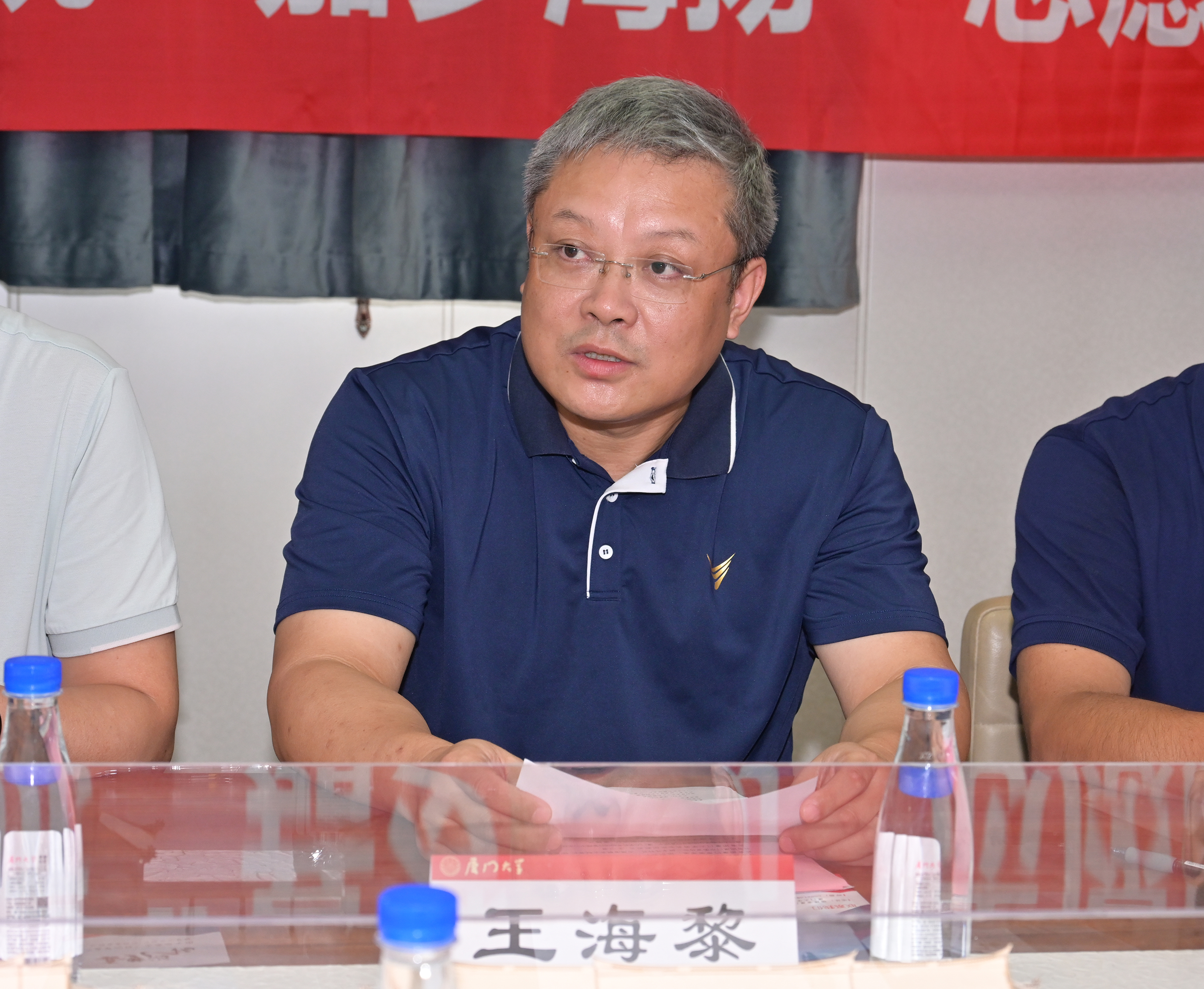 王海黎副院长代表学院在仪式上讲话,他从校主陈嘉庚先生“力挽海权,培育专才”的海洋情怀和新时代“海洋强国”的战略需求出发,强调“嘉梦海扬”志愿服务团成立的重要意义,他对“嘉梦海扬”志愿服务团的建设和发展提出宝贵建议,并对志愿服务团的成员们寄予厚望,希望每一位团队成员能够增强“弘扬嘉庚精神,传递蓝色梦想”的责任感与使命感,把“忠公、诚毅、勤俭、创新”的嘉庚精神牢记在心上,把“奉献、友爱、互助、进步”的志愿精神落实在行动中。