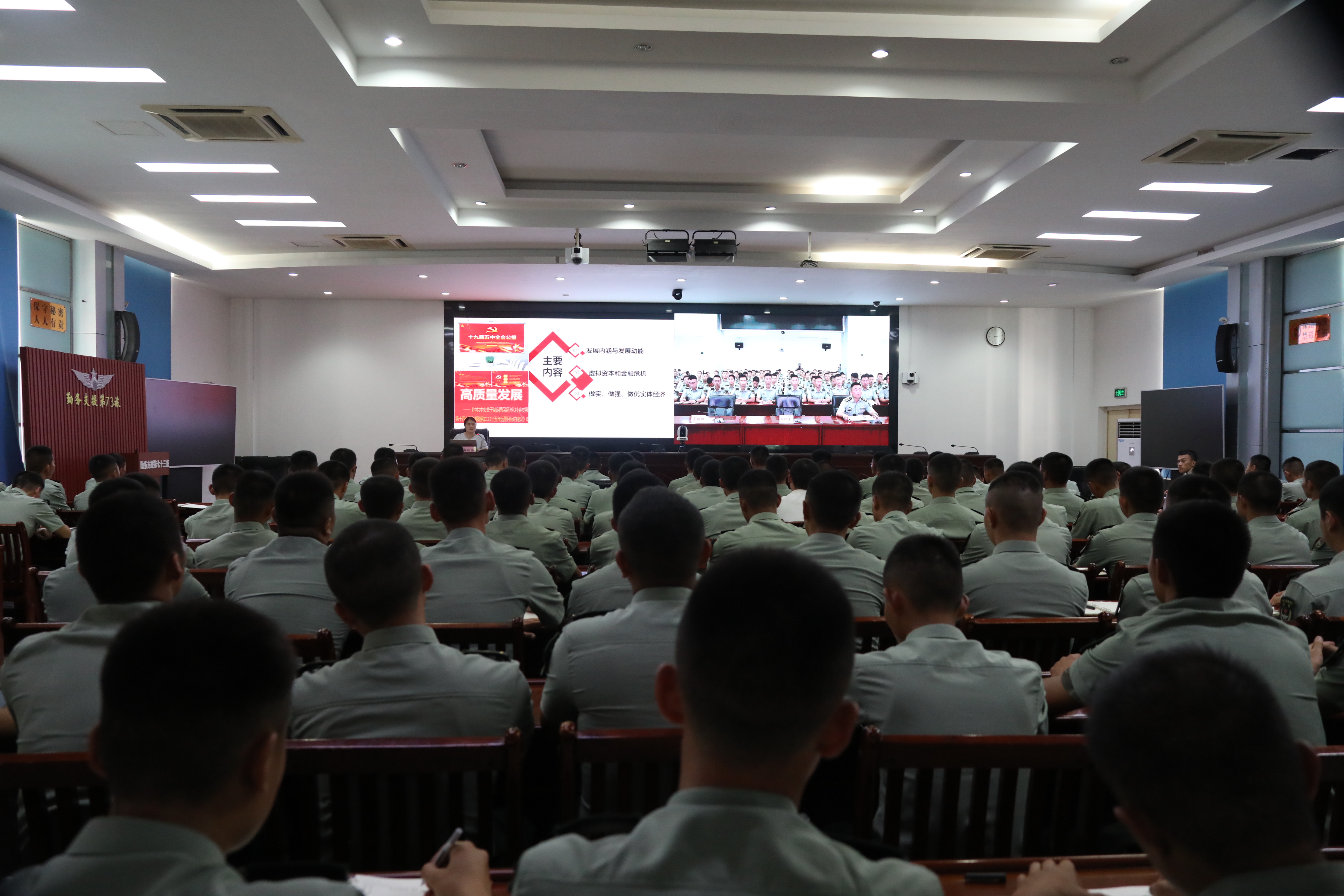 随后的学习活动分为“师生共学”“座谈研讨”“重温誓词”三部分开展。在“师生共学”环节,我院在职教职工第一党支部专门邀请马克思主义学院傅丽芬老师,为部队学生、支部党员带来一堂题为《高质量发展 迈向现代化新征程—做实做强做优实体经济》党史思政课。傅丽芬教授从发展的内涵说起,带领师生共同学习习近平总书记关于中国实体经济发展的一系列重要论述的理论内涵与实践意义。支部党员李敏准确把握学生学习特点和需求,精心准备课程内容,打破以往网络授课模式,在营地报告厅为接受我校网络教育的部队学生现场进行了一次极具针对性的课程辅导和学习答疑。